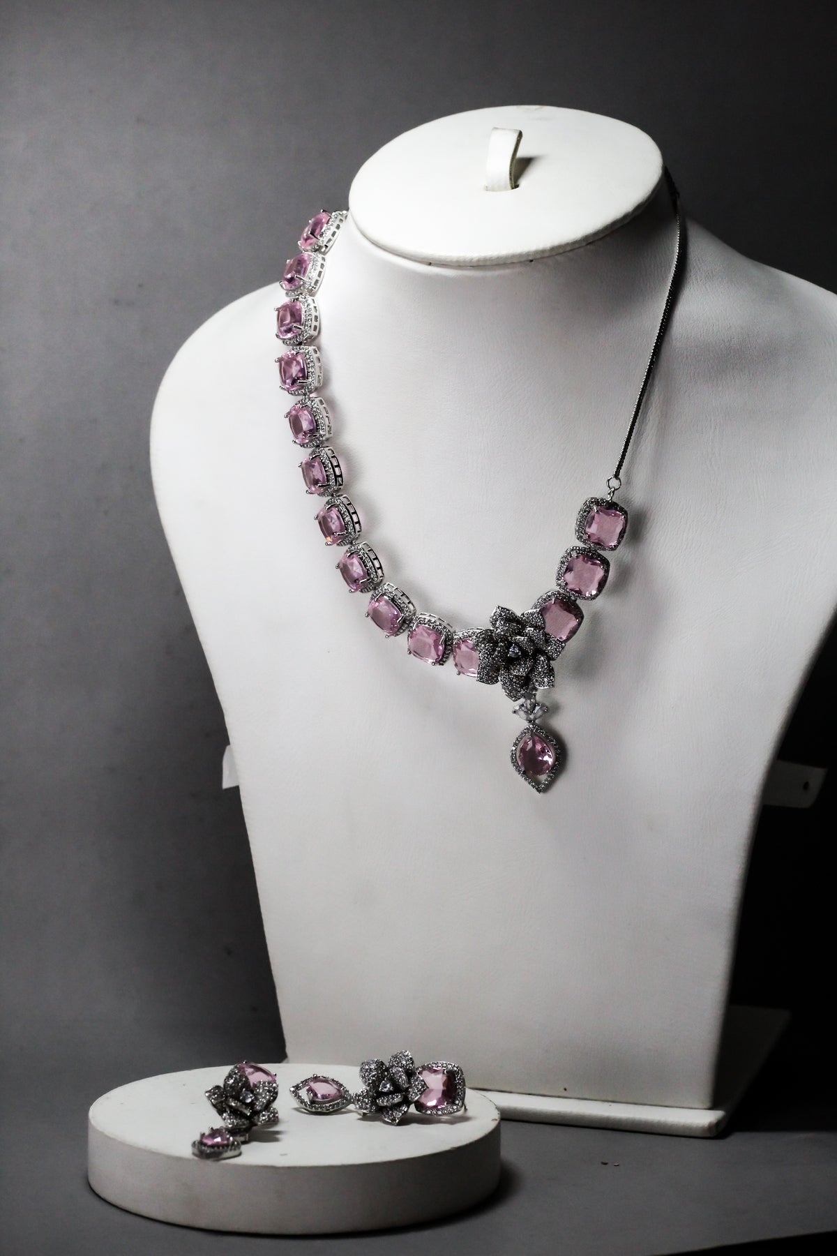 Matching earrings included, creating a complete and coordinated jewelry set.