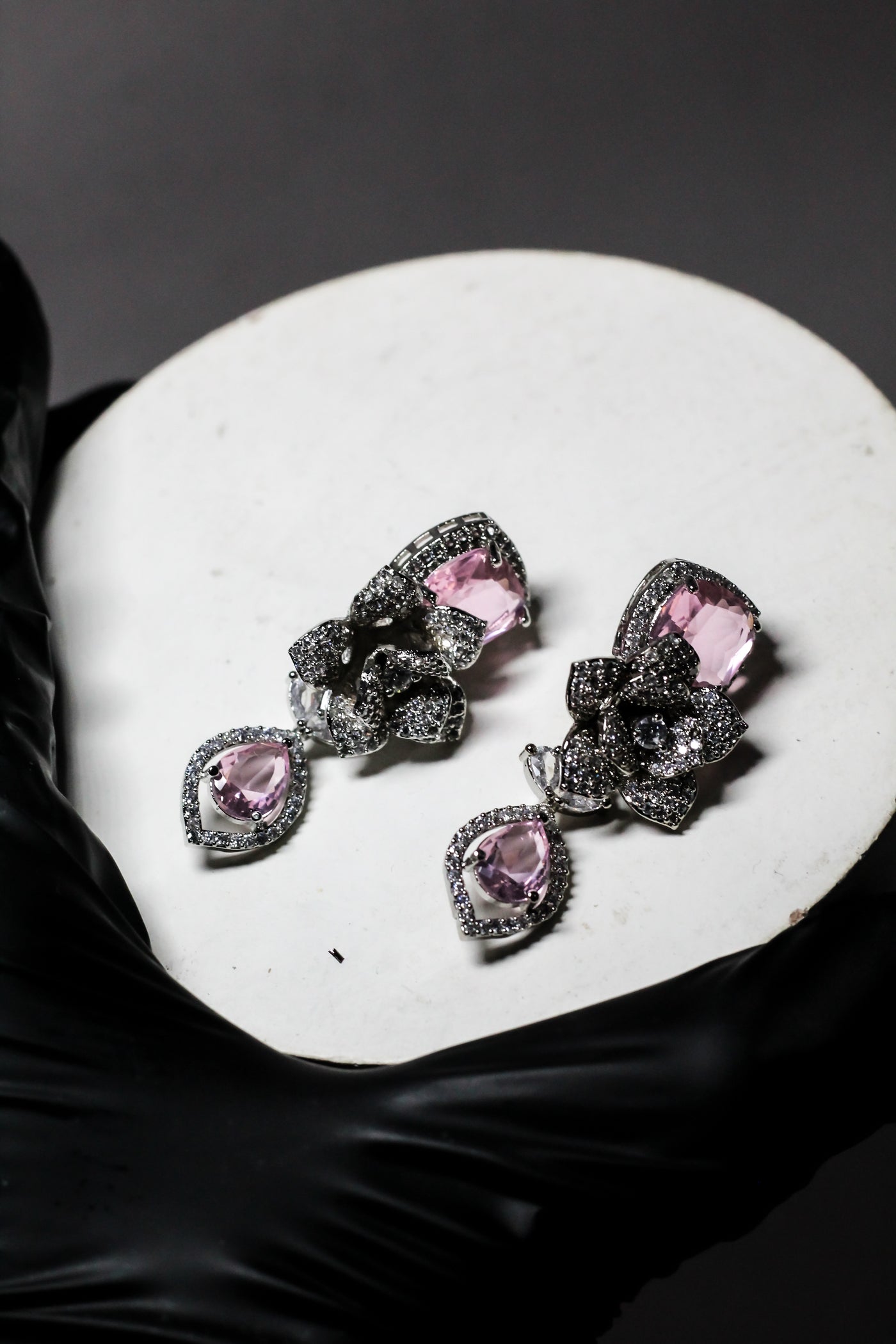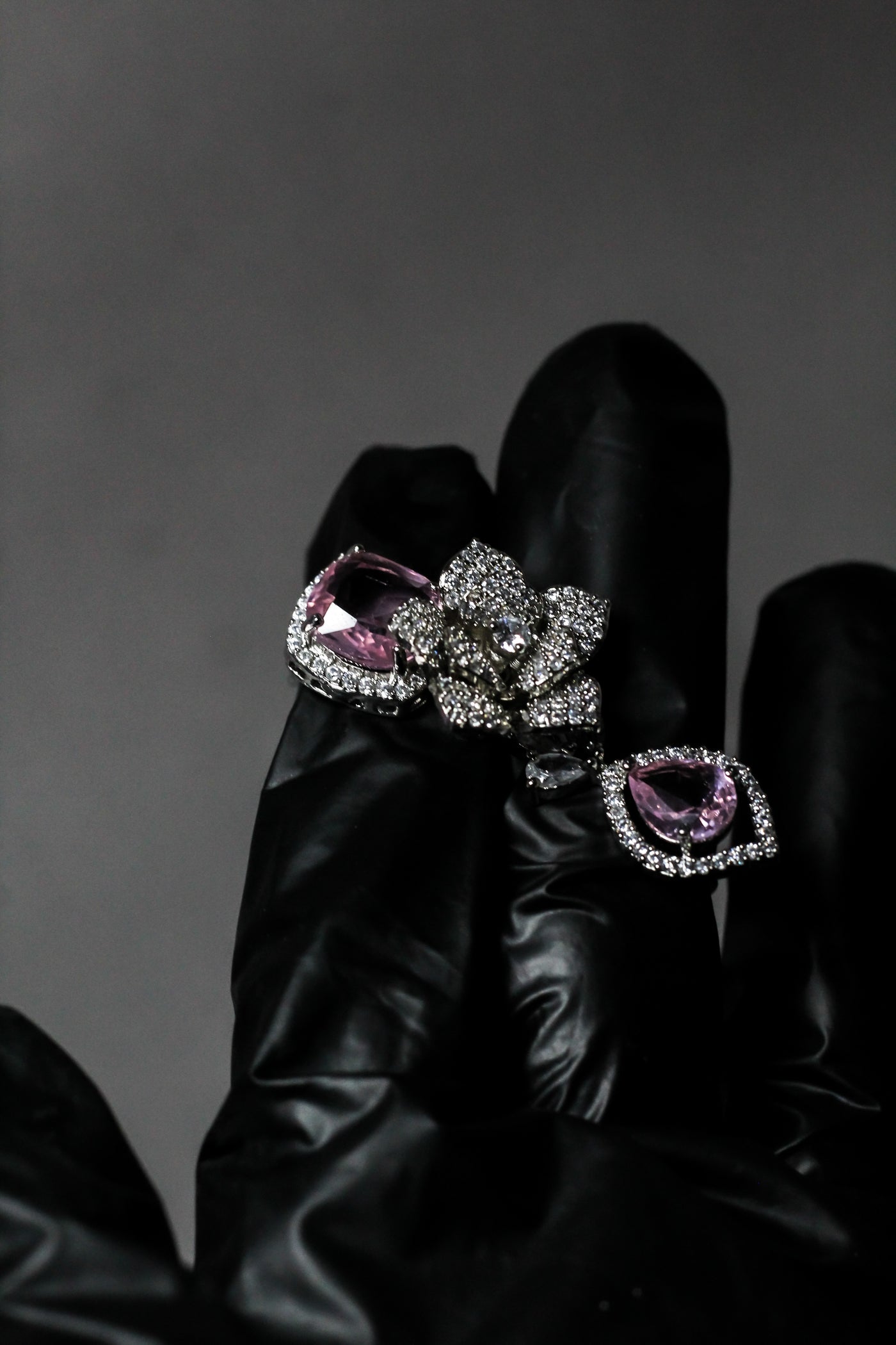 Elegant pink gemstones arranged in a balanced, symmetrical design for a refined look.