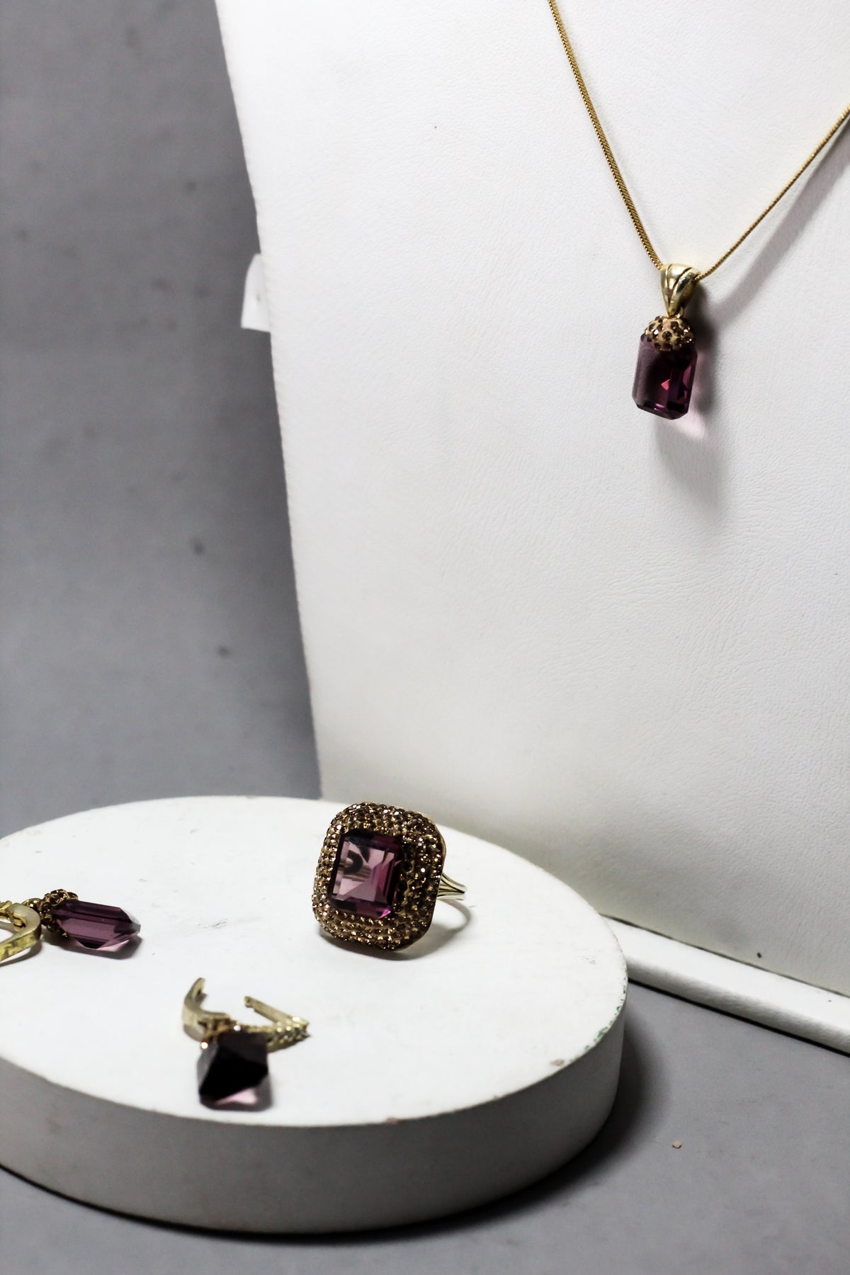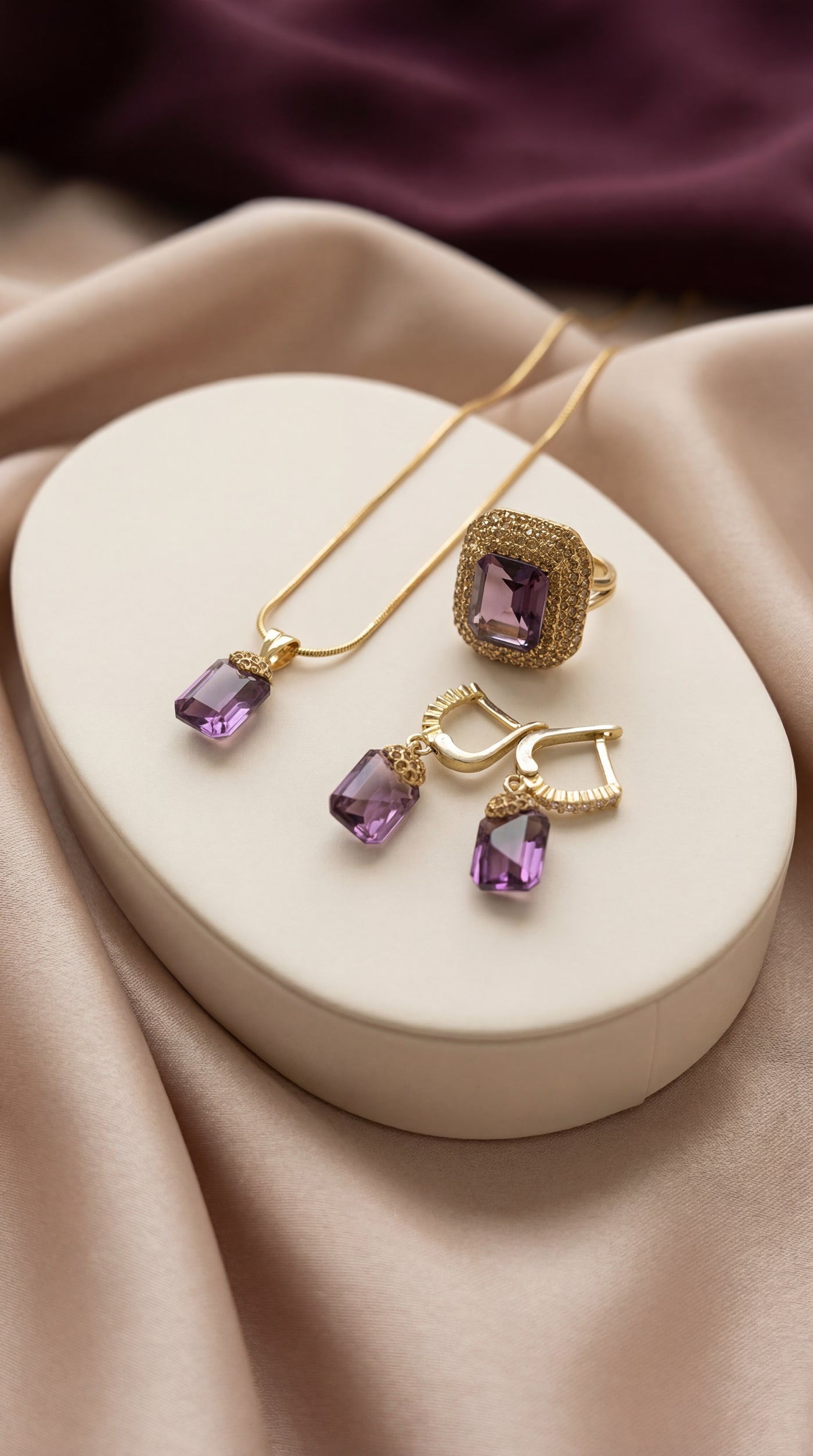 Deep Purple Gemstones – Rich amethyst-toned stones with a luxurious, radiant finish.
