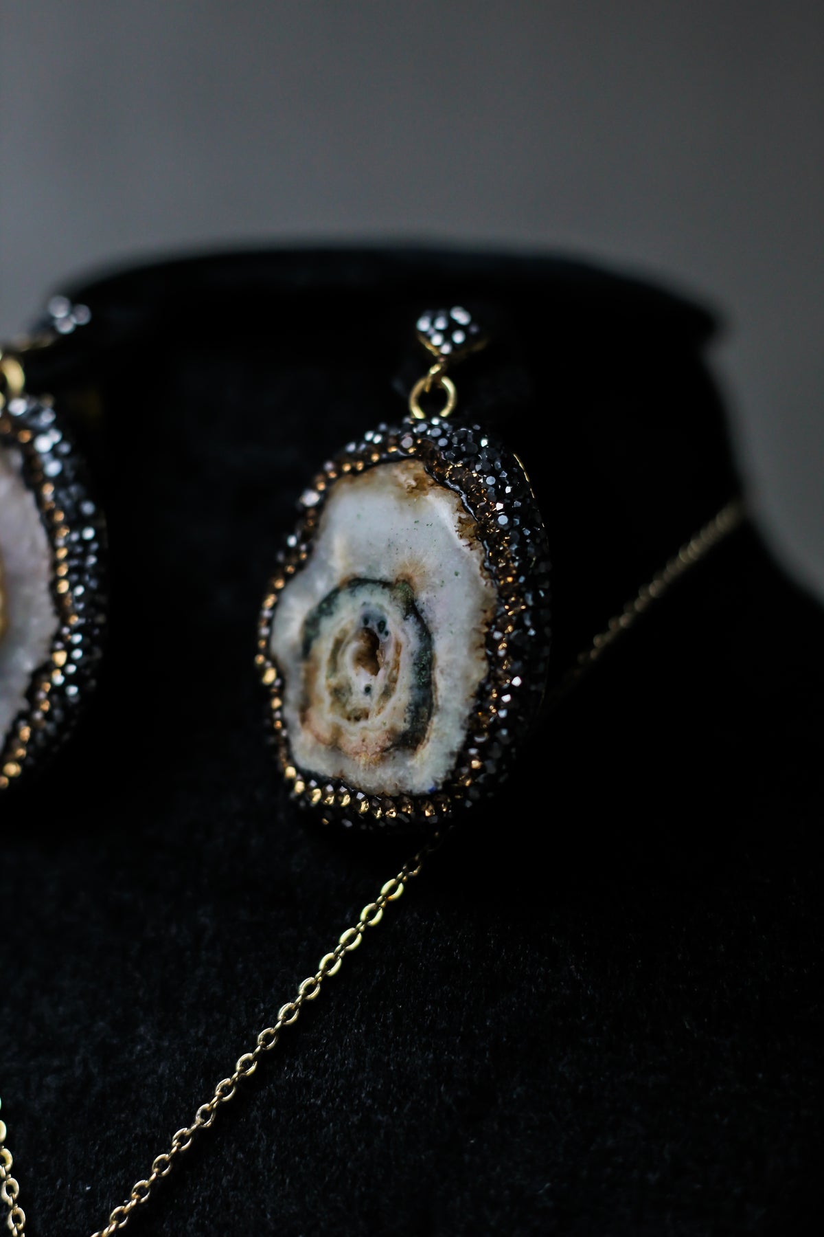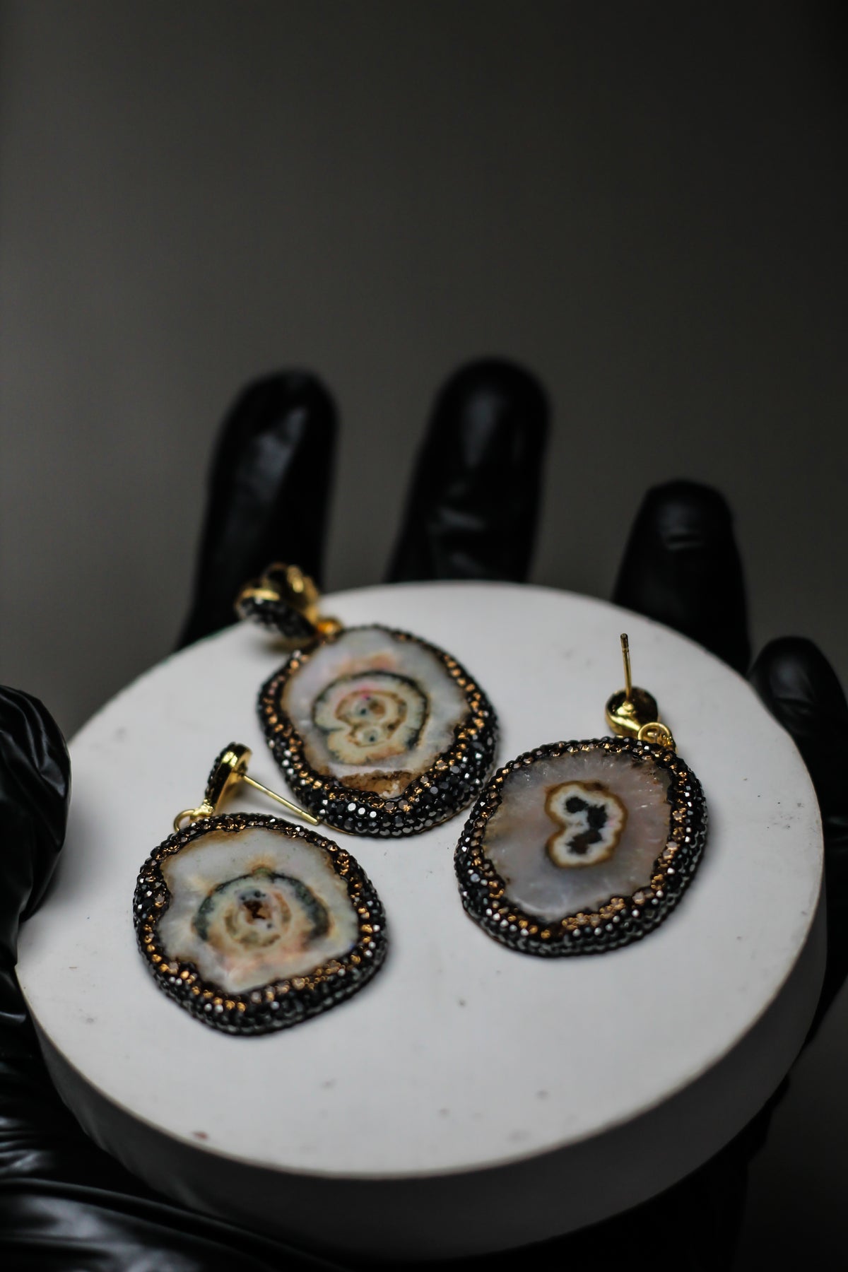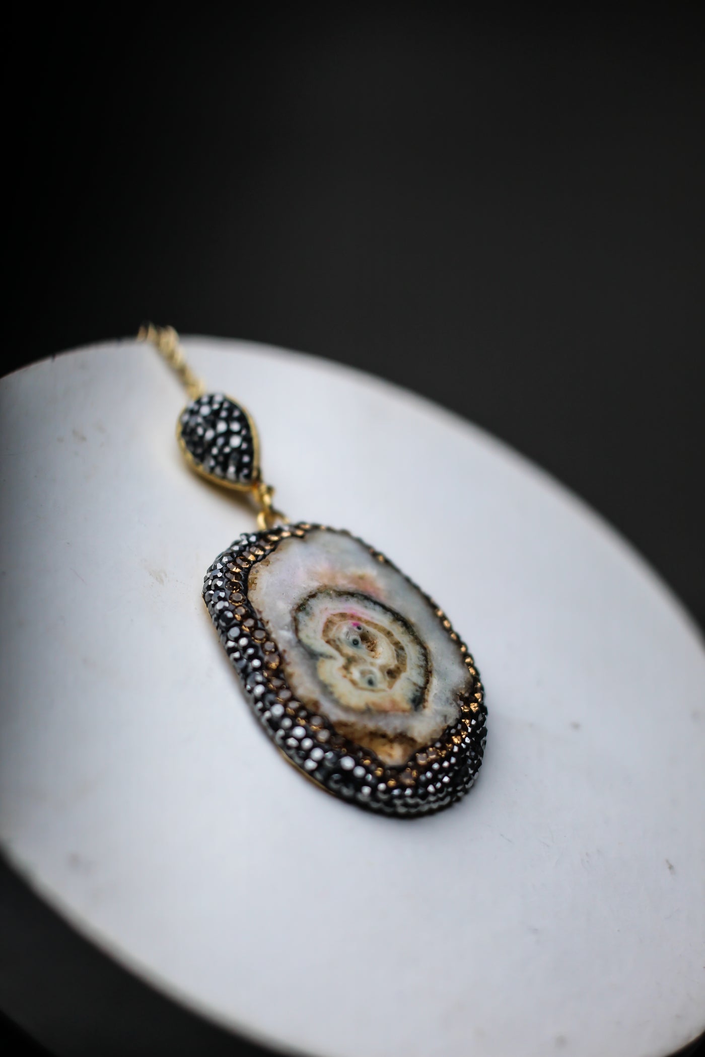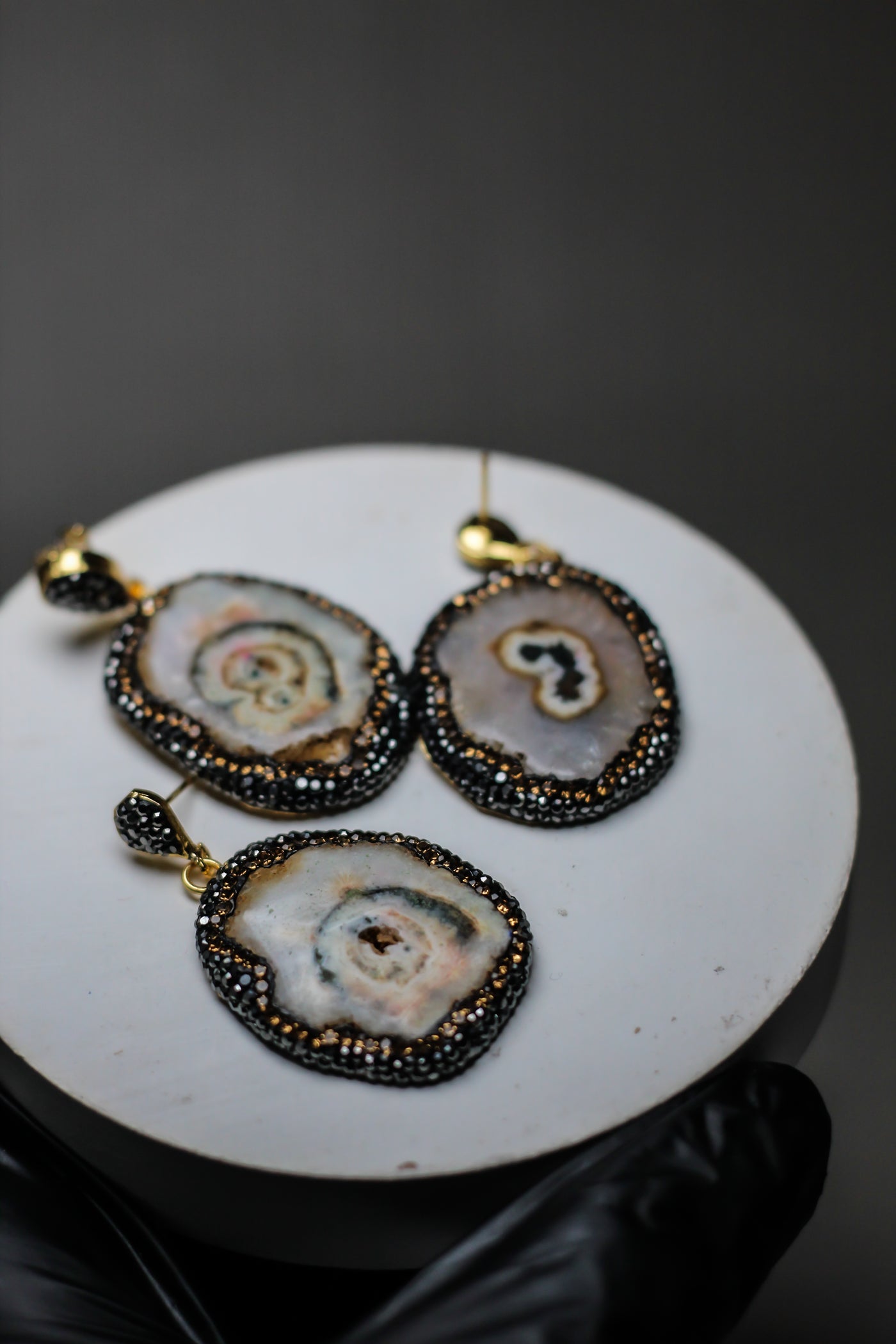 Quickshop Natural Pink Geode – Unique crystal center with natural petal-like patterns. Crystal-Studded...