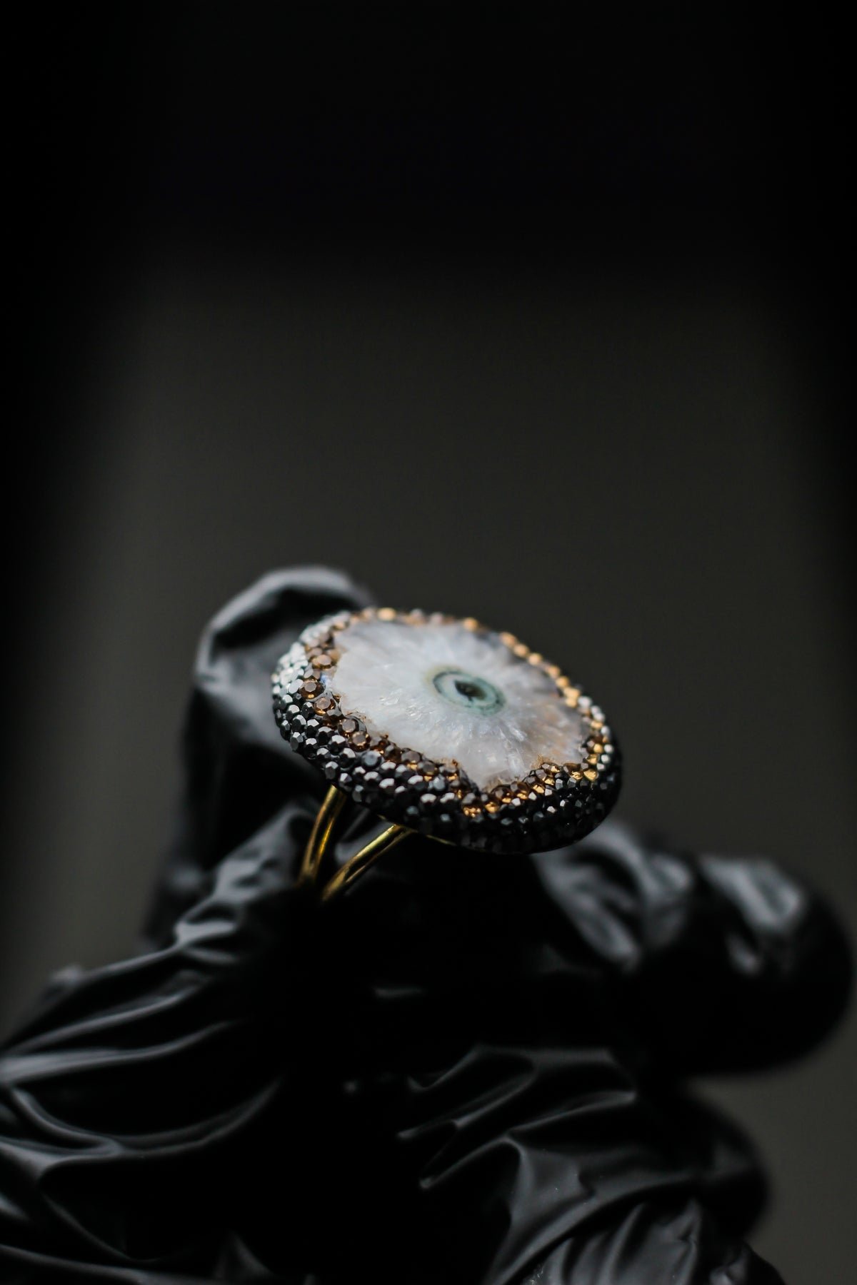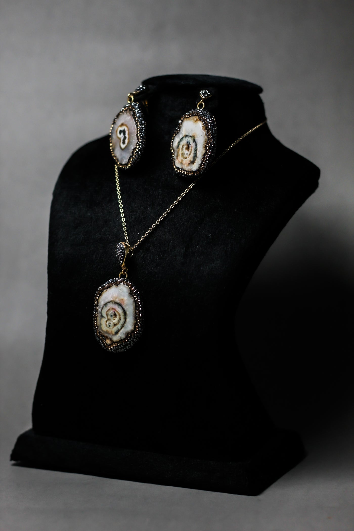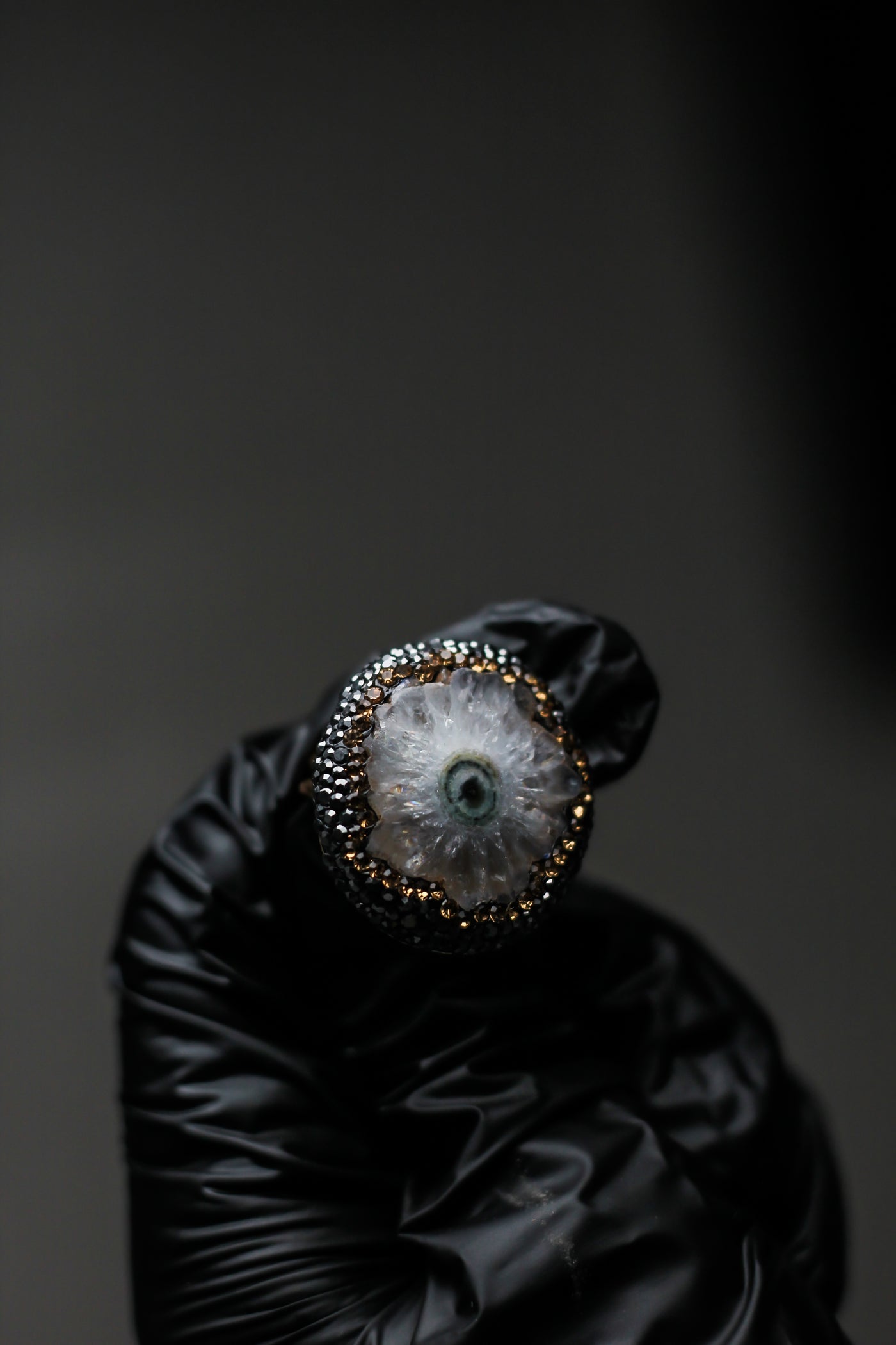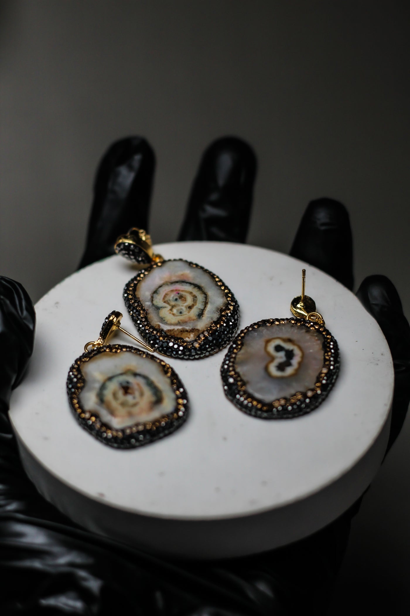 Quickshop Natural Pink Geode – Unique crystal center with natural petal-like patterns. Crystal-Studded...
