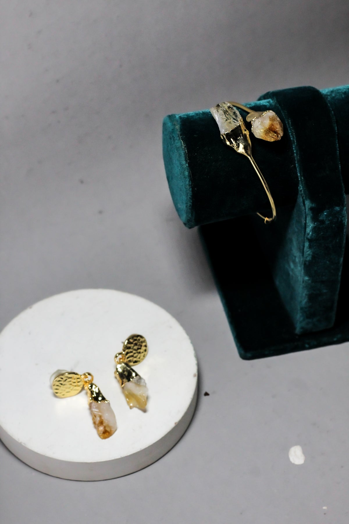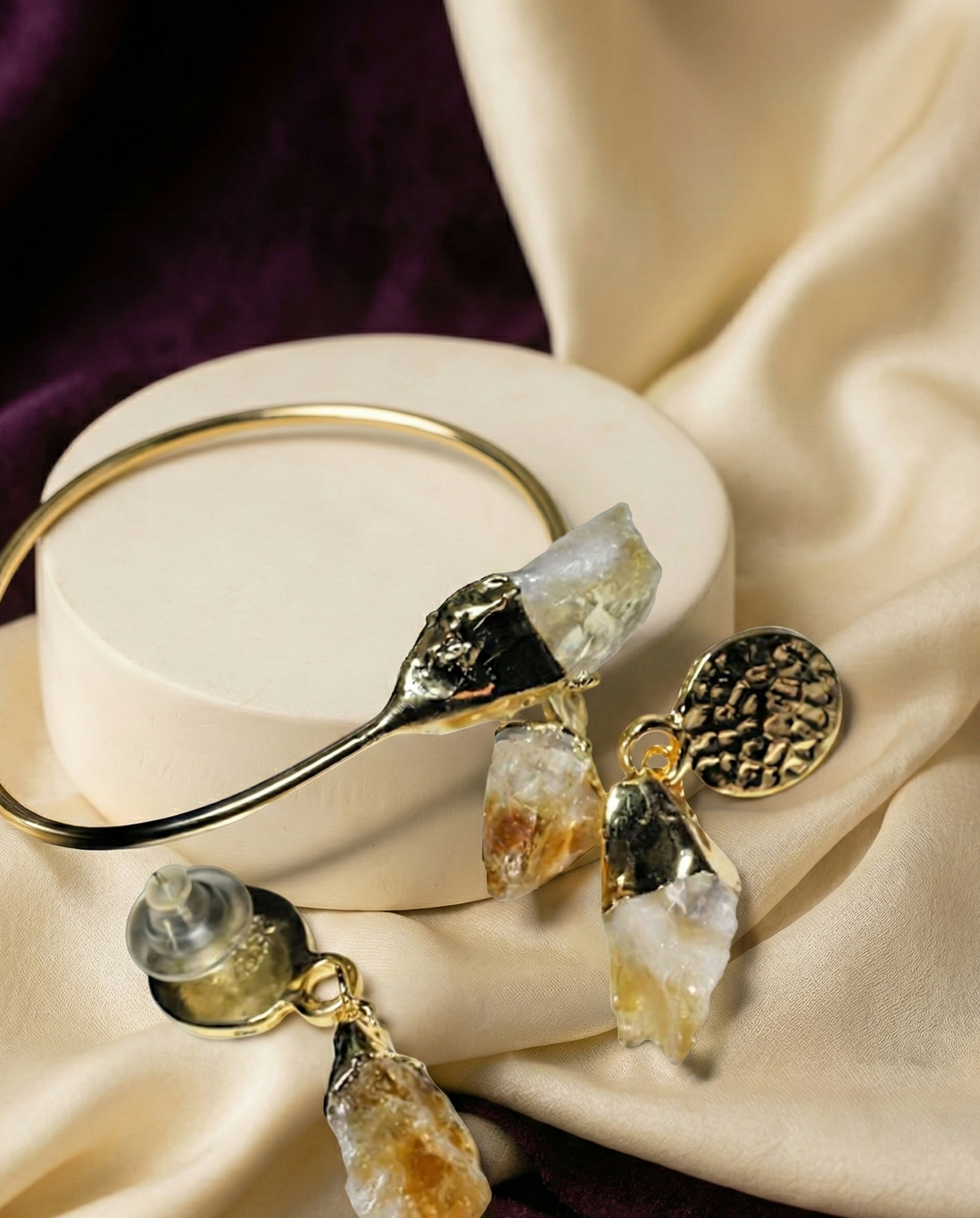 Matching drop earrings complete a cohesive, statement-ready set.
