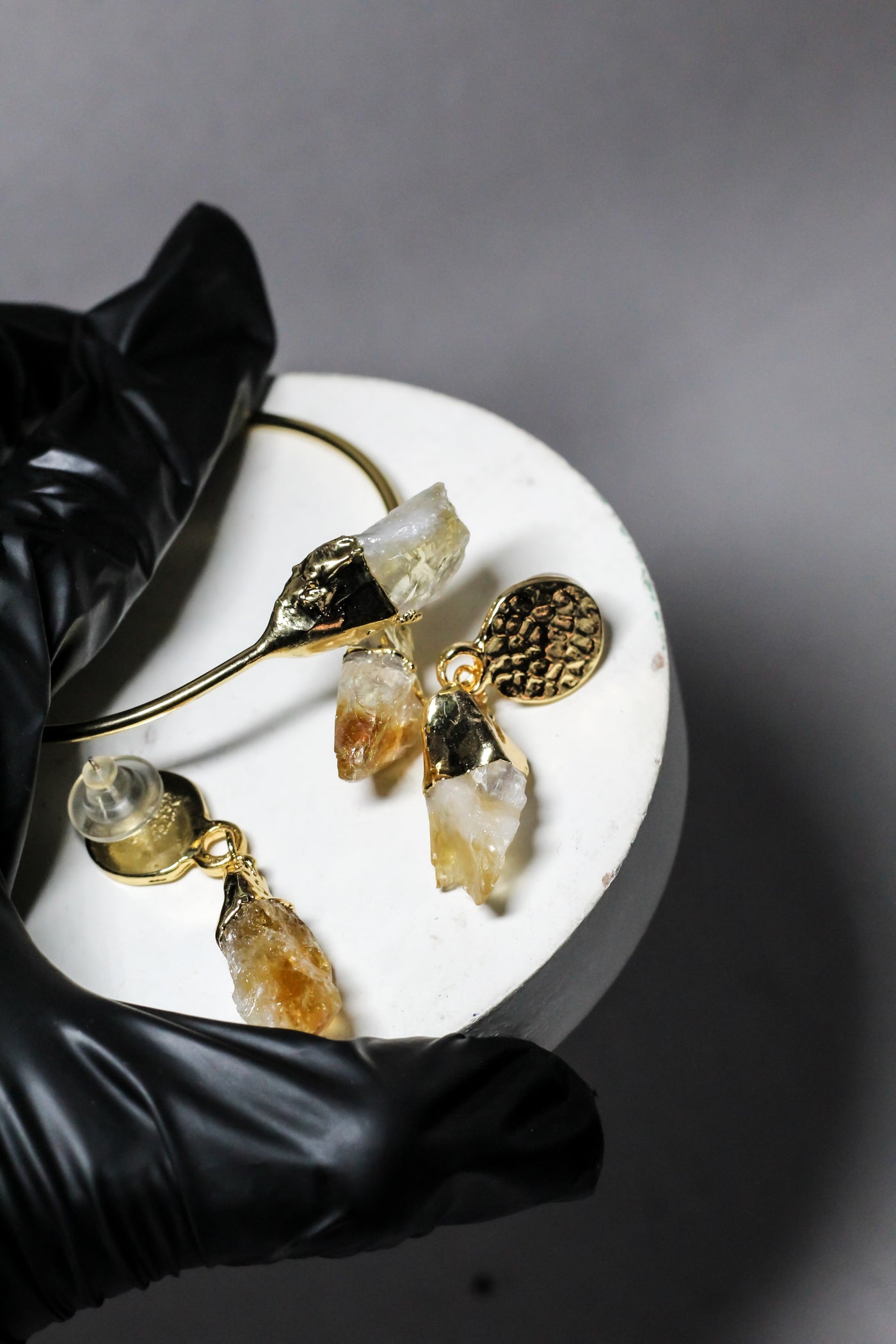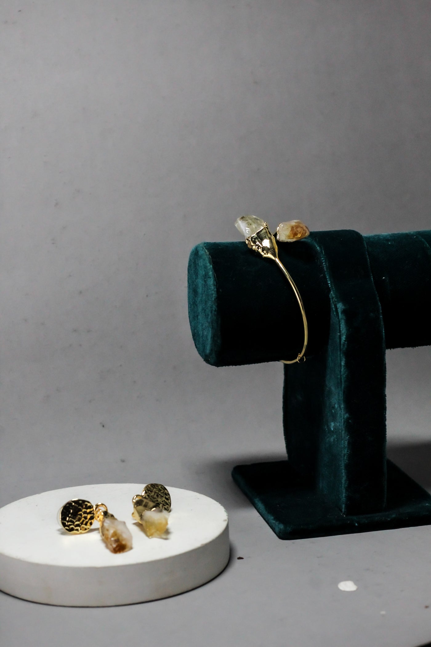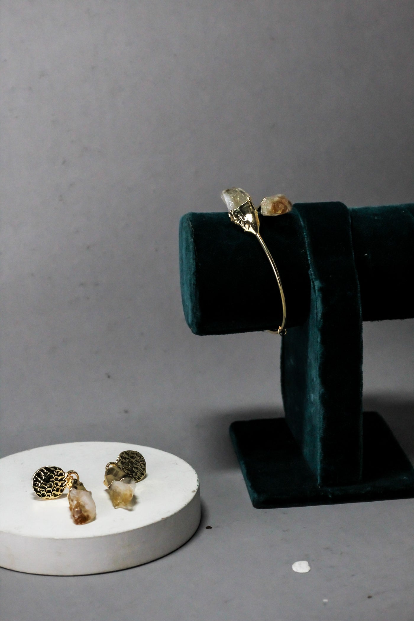Raw crystal stones showcase a natural, one-of-a-kind texture and earthy elegance.