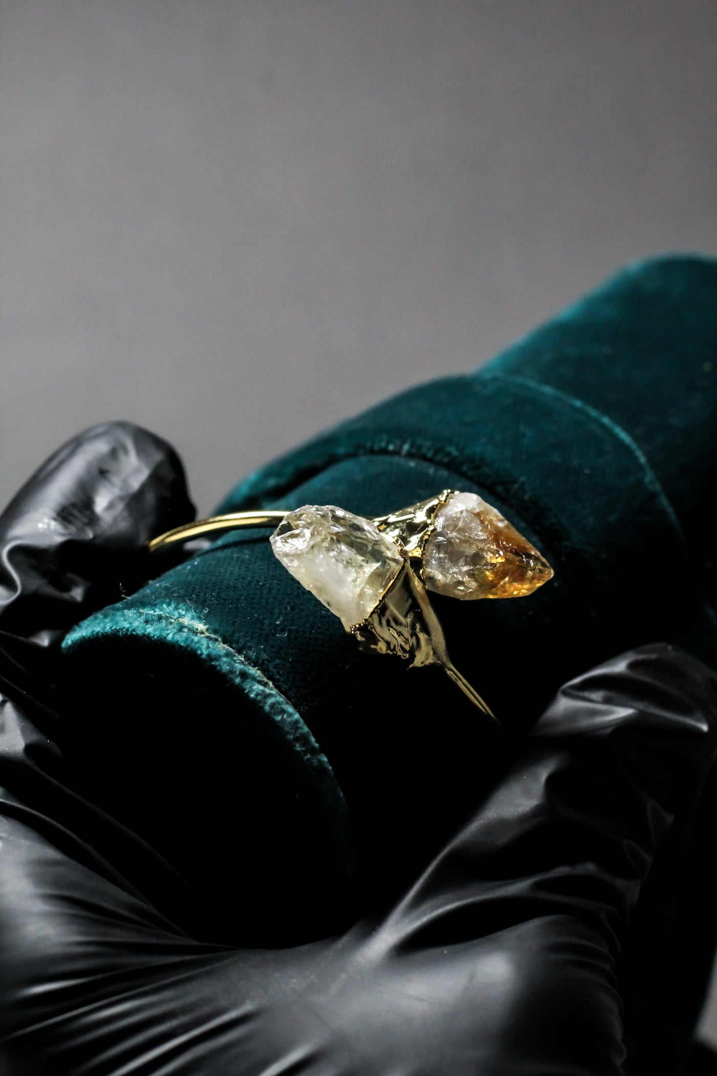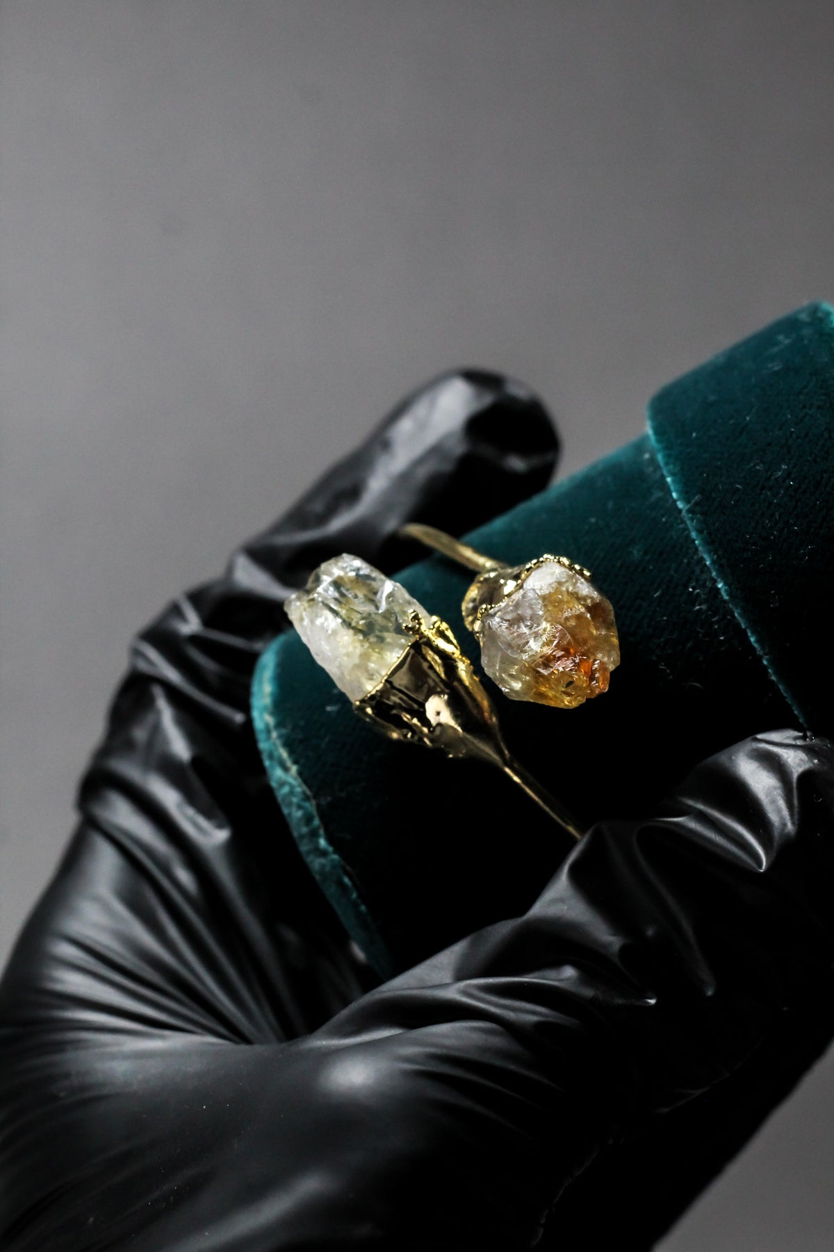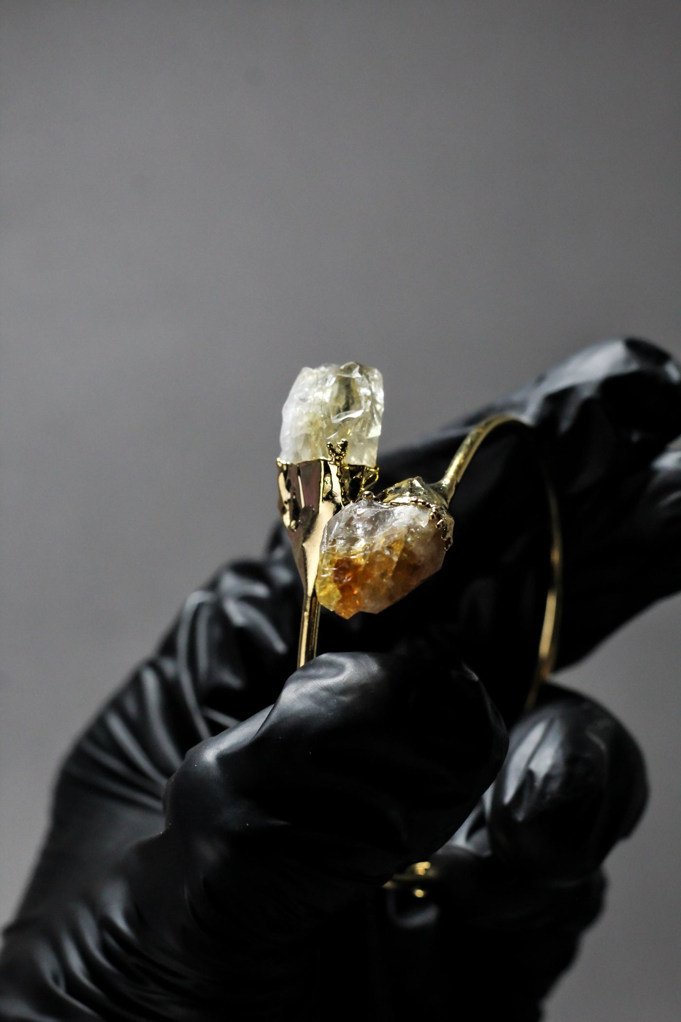 Organic gold-tone setting adds an artisanal, handcrafted aesthetic.