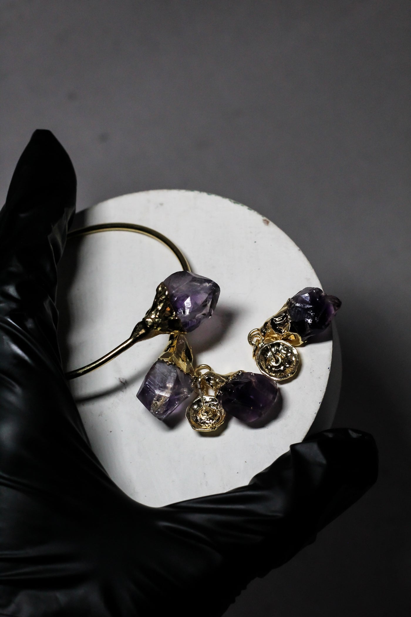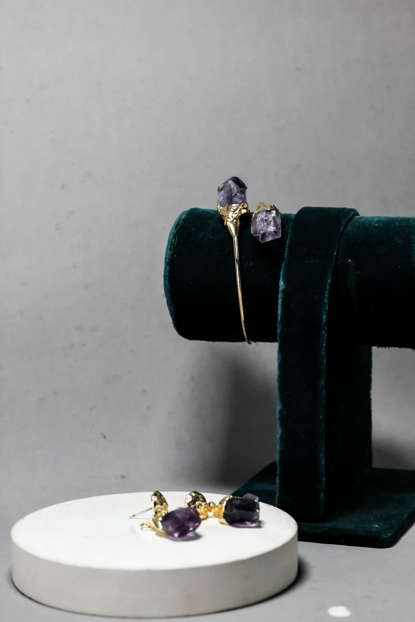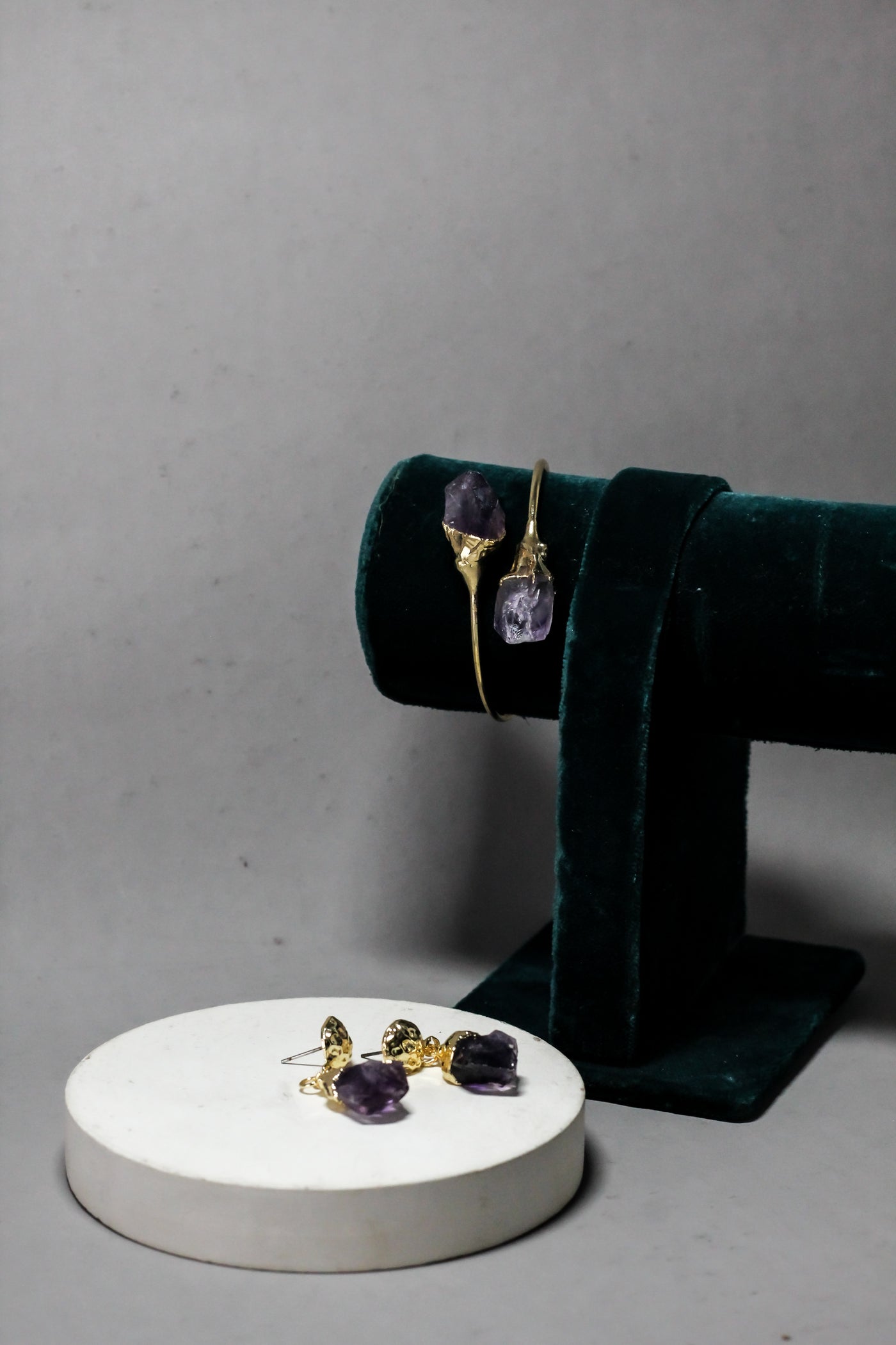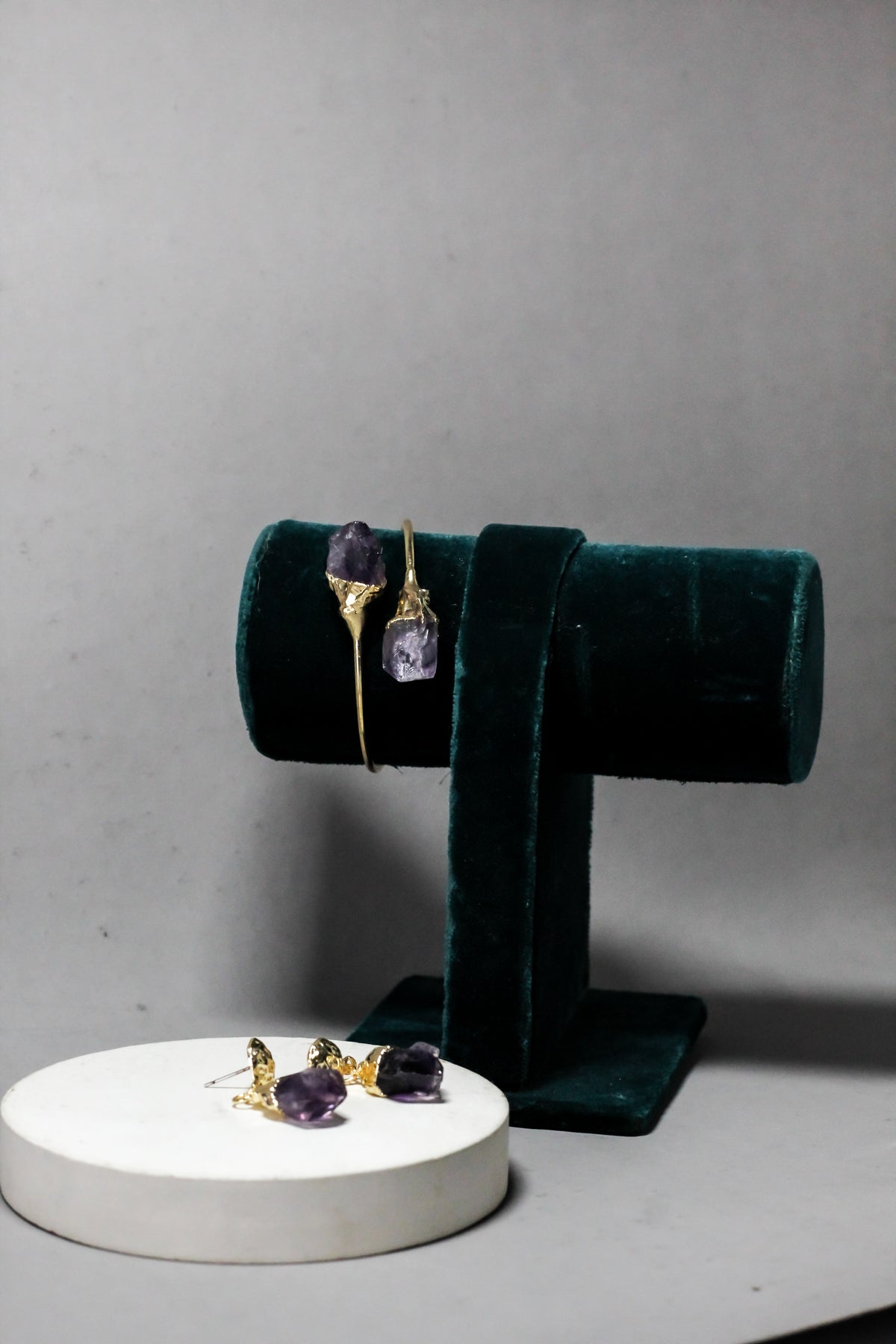 Raw purple stones offer a natural, uncut beauty with a unique character.