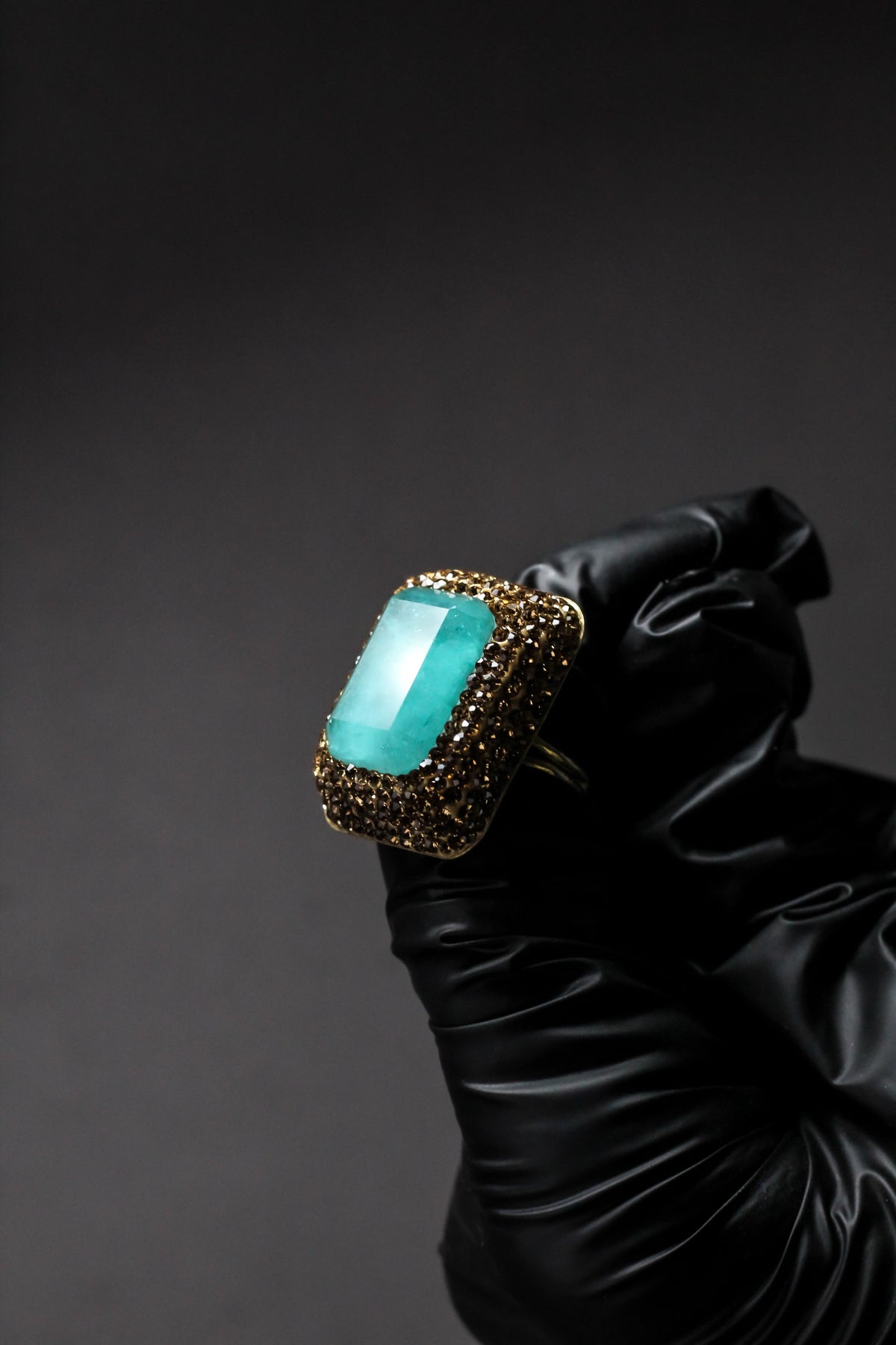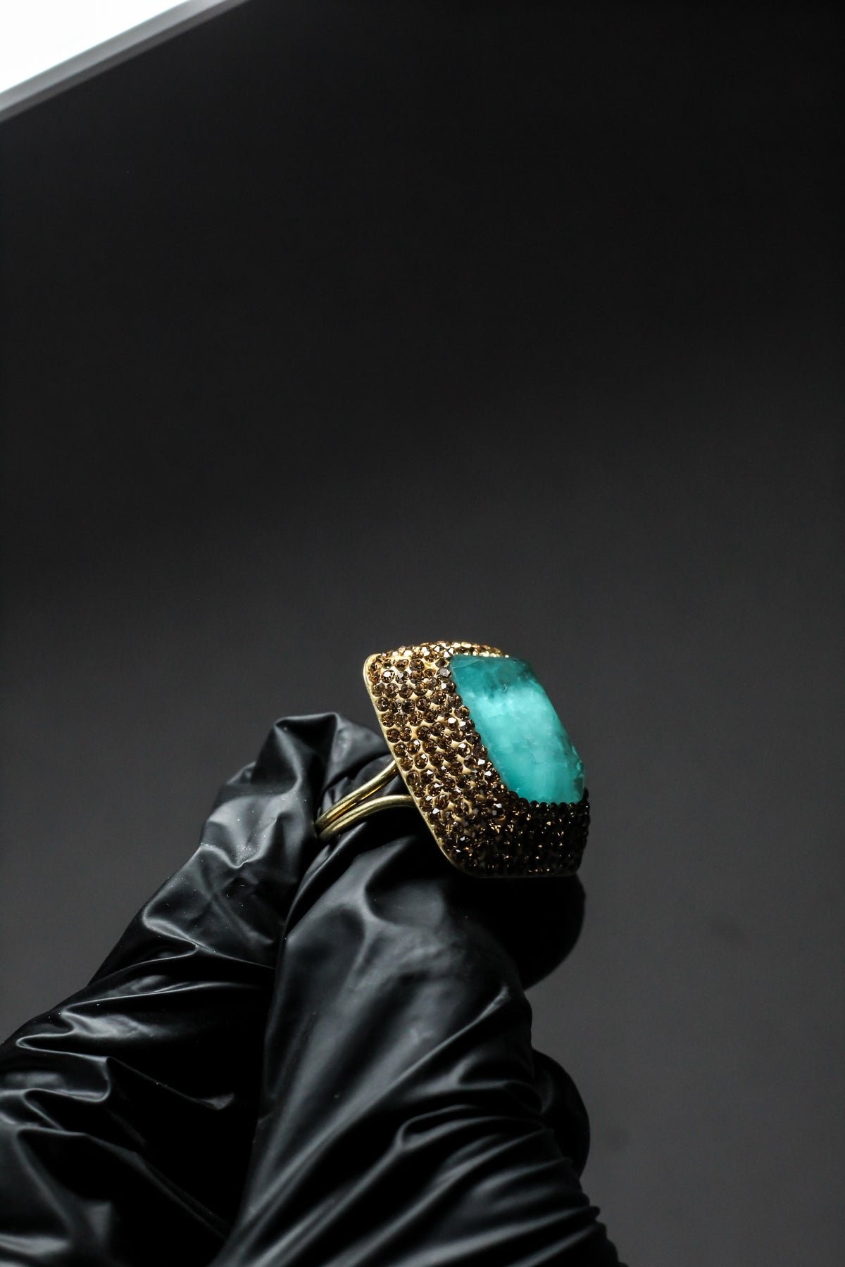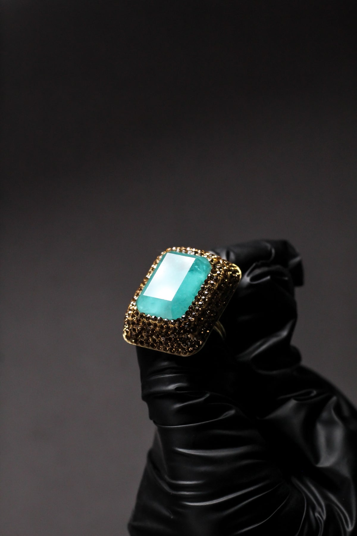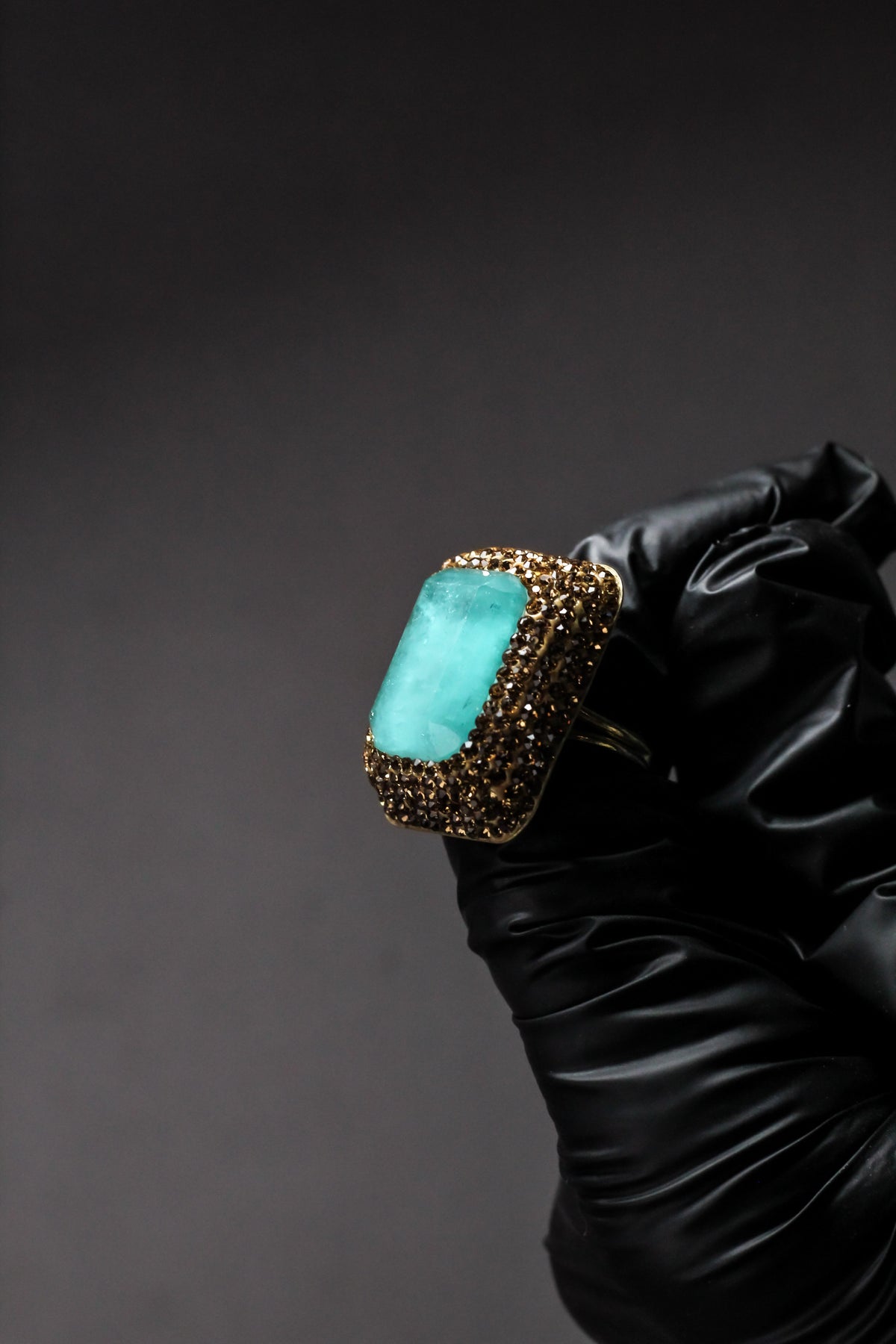 Rectangular turquoise stone offers a fresh, bold, and sophisticated focal point.