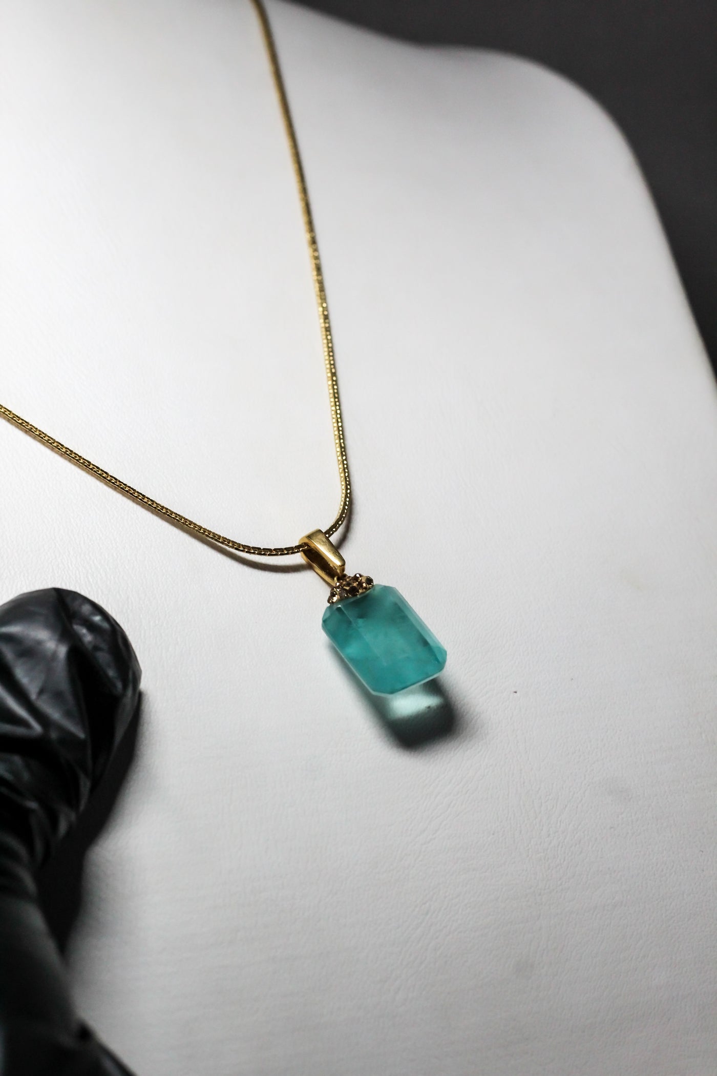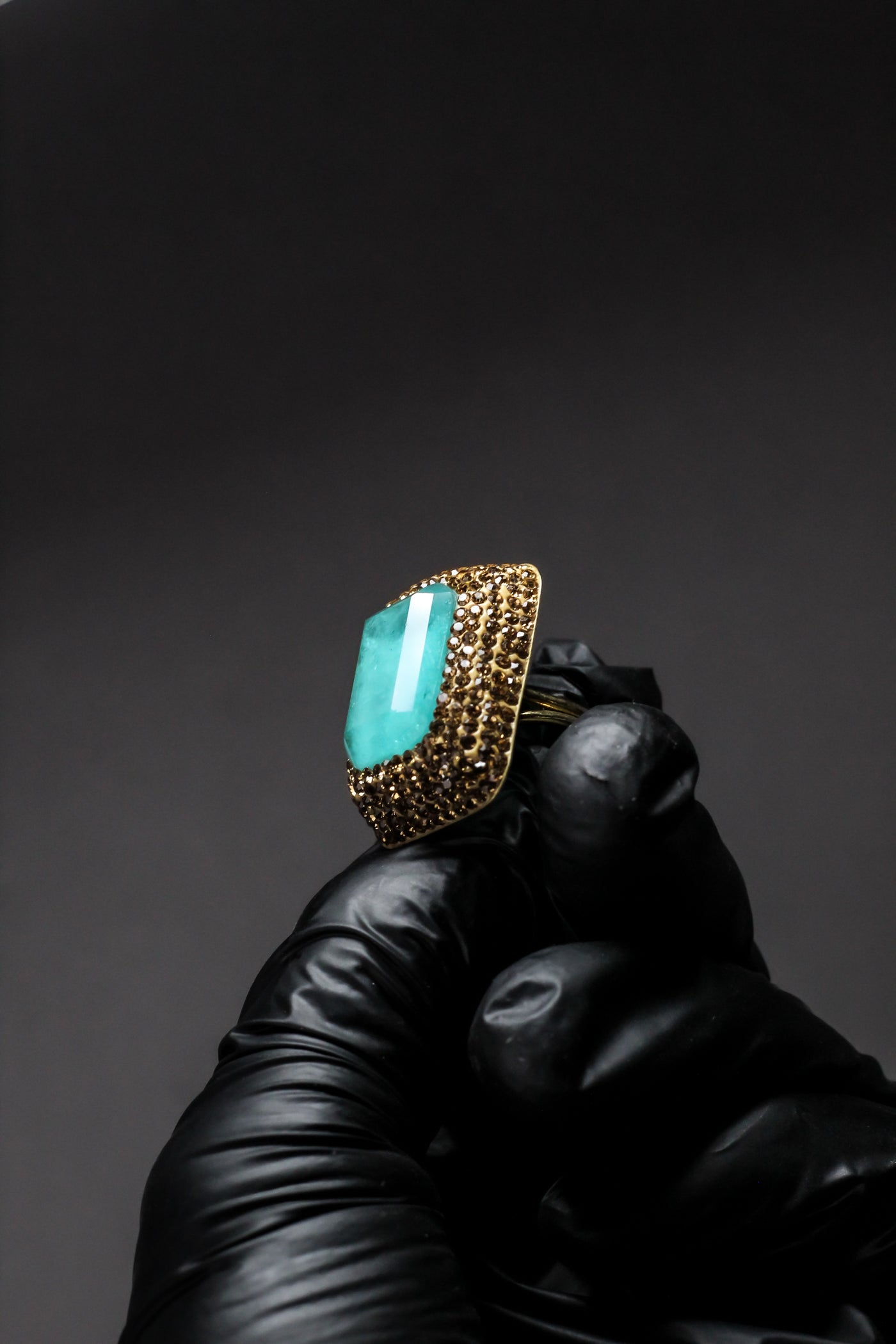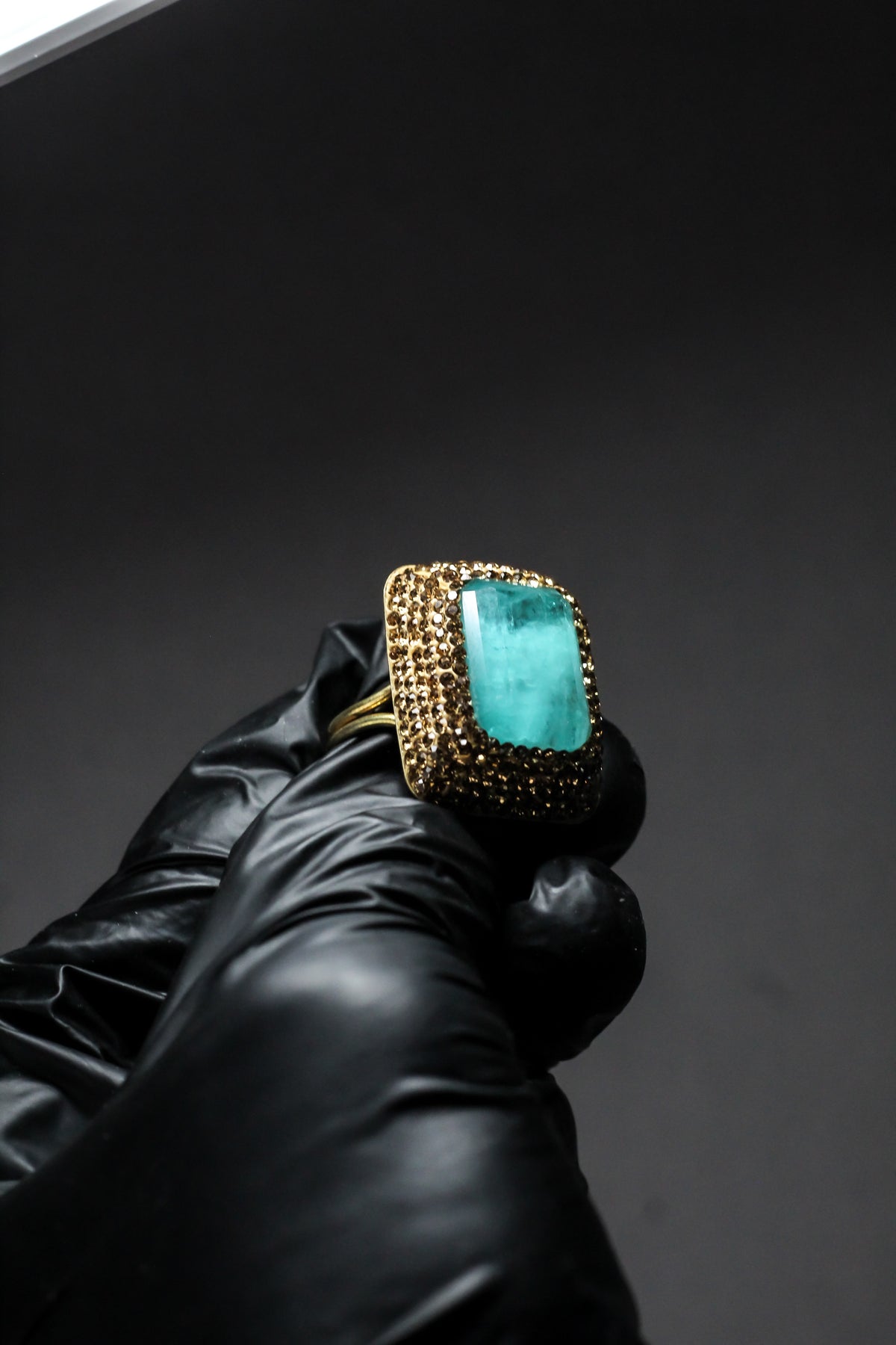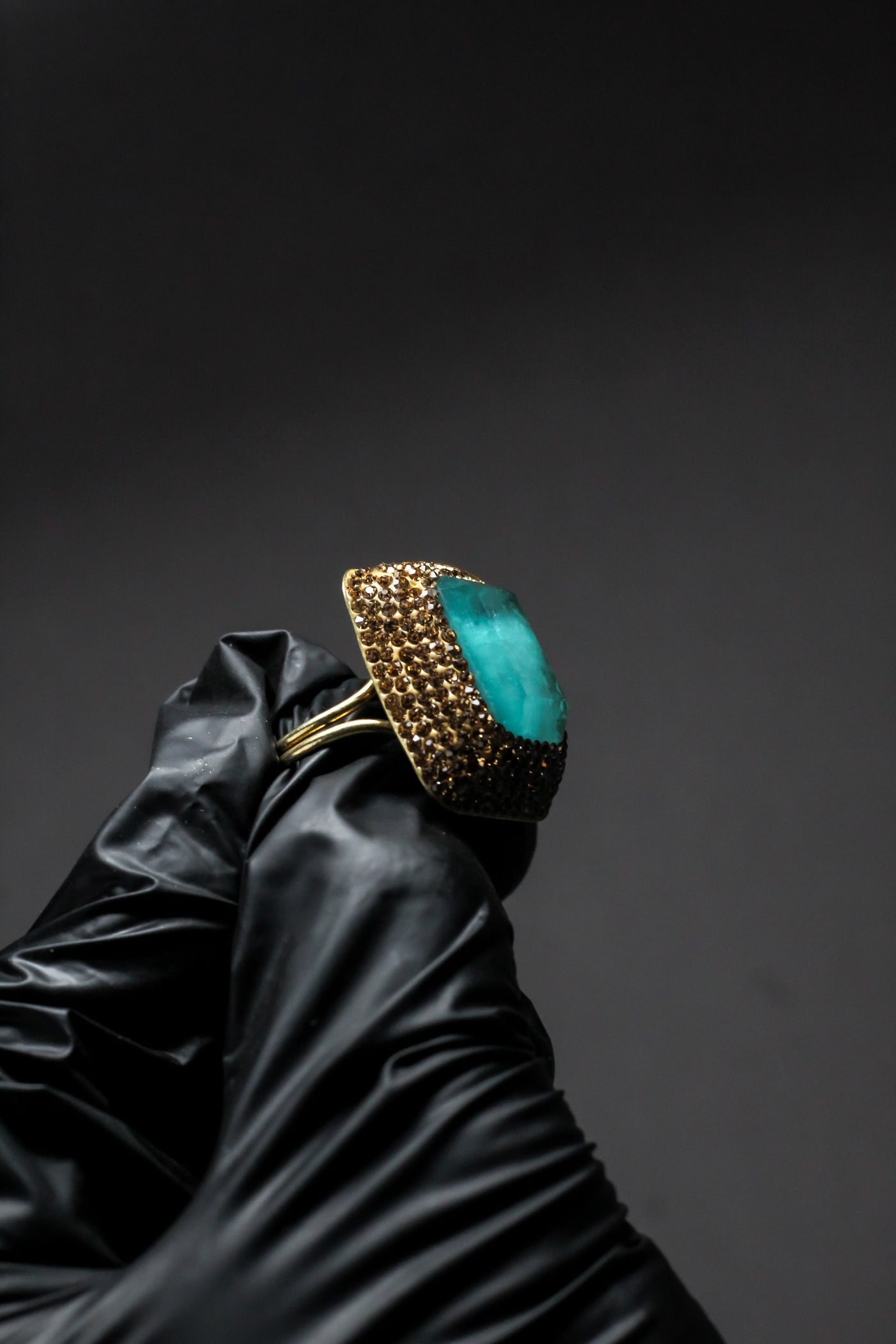 Rectangular turquoise stone offers a fresh, bold, and sophisticated focal point.