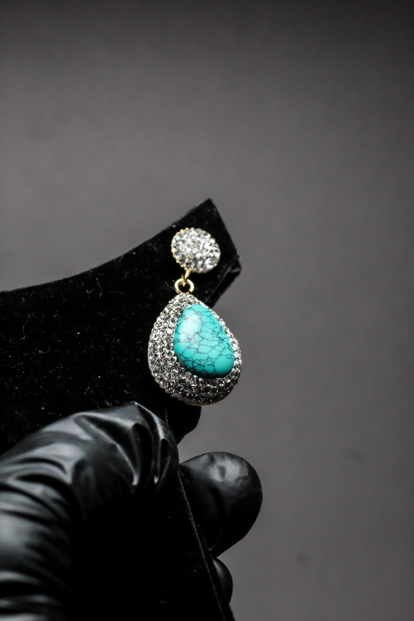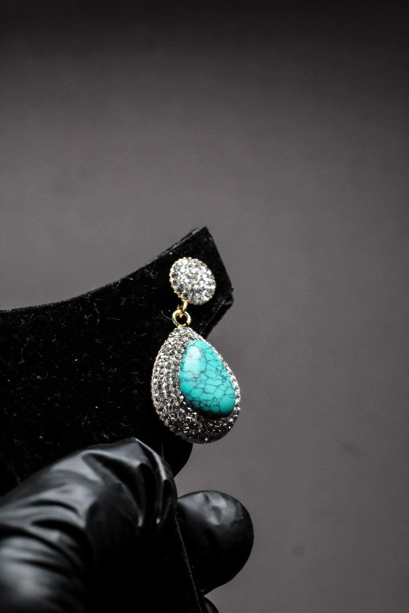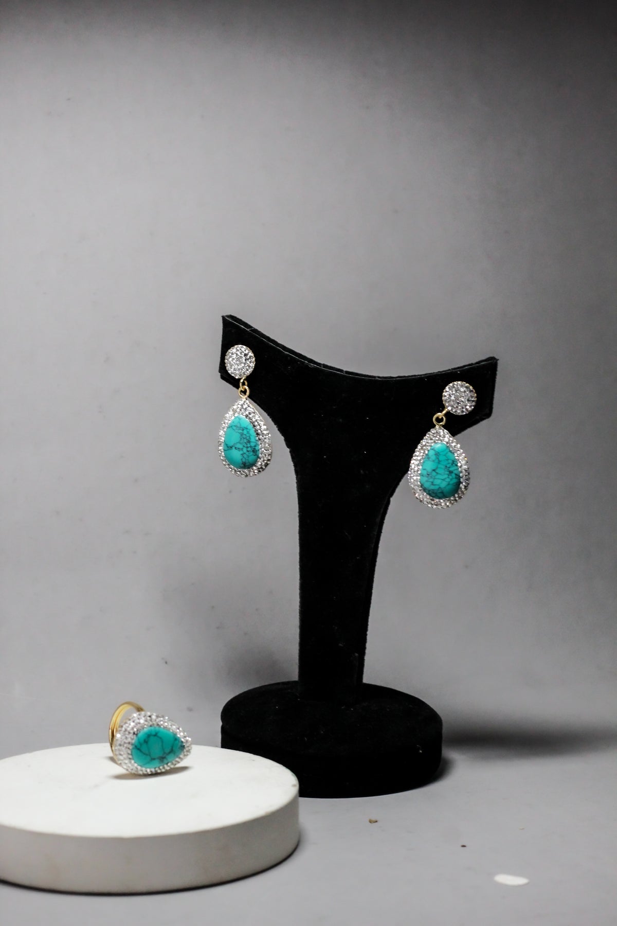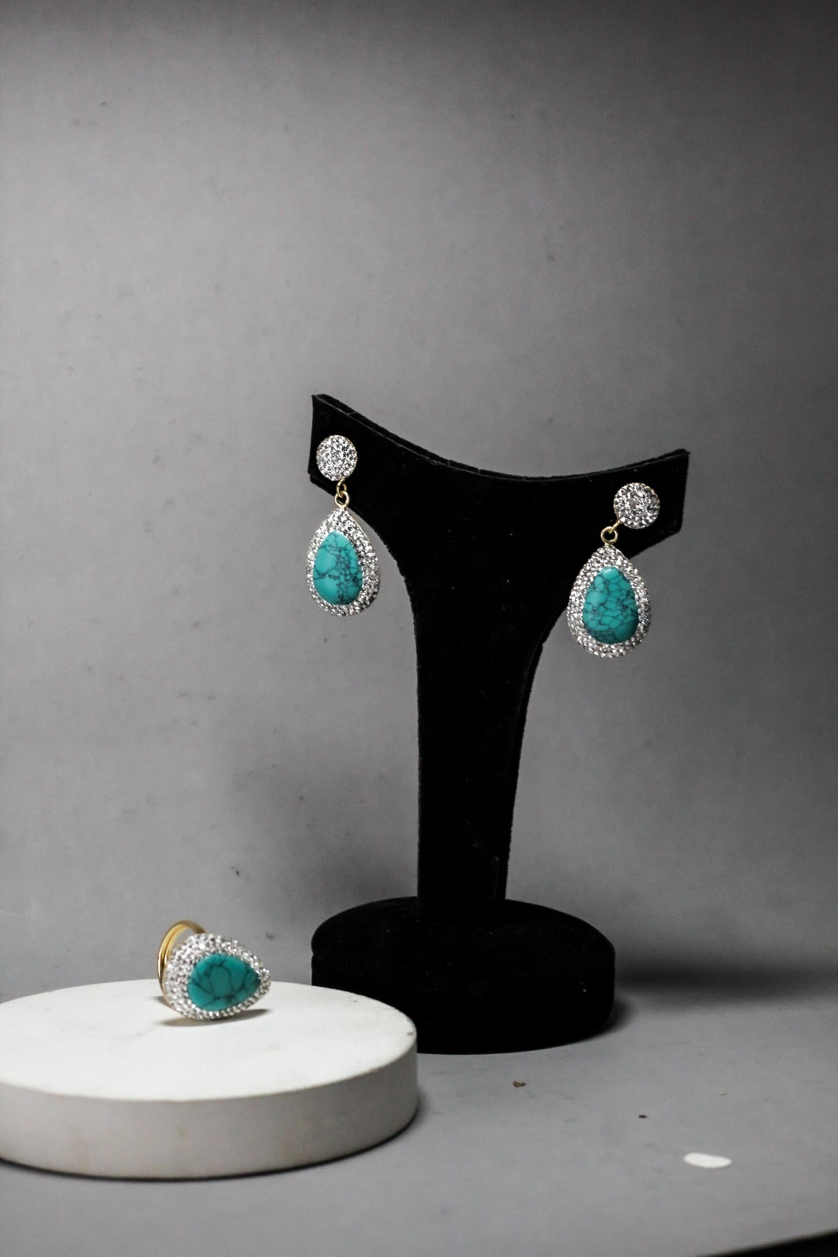 Teardrop-shaped turquoise stones create a fresh, elegant, and eye-catching look.