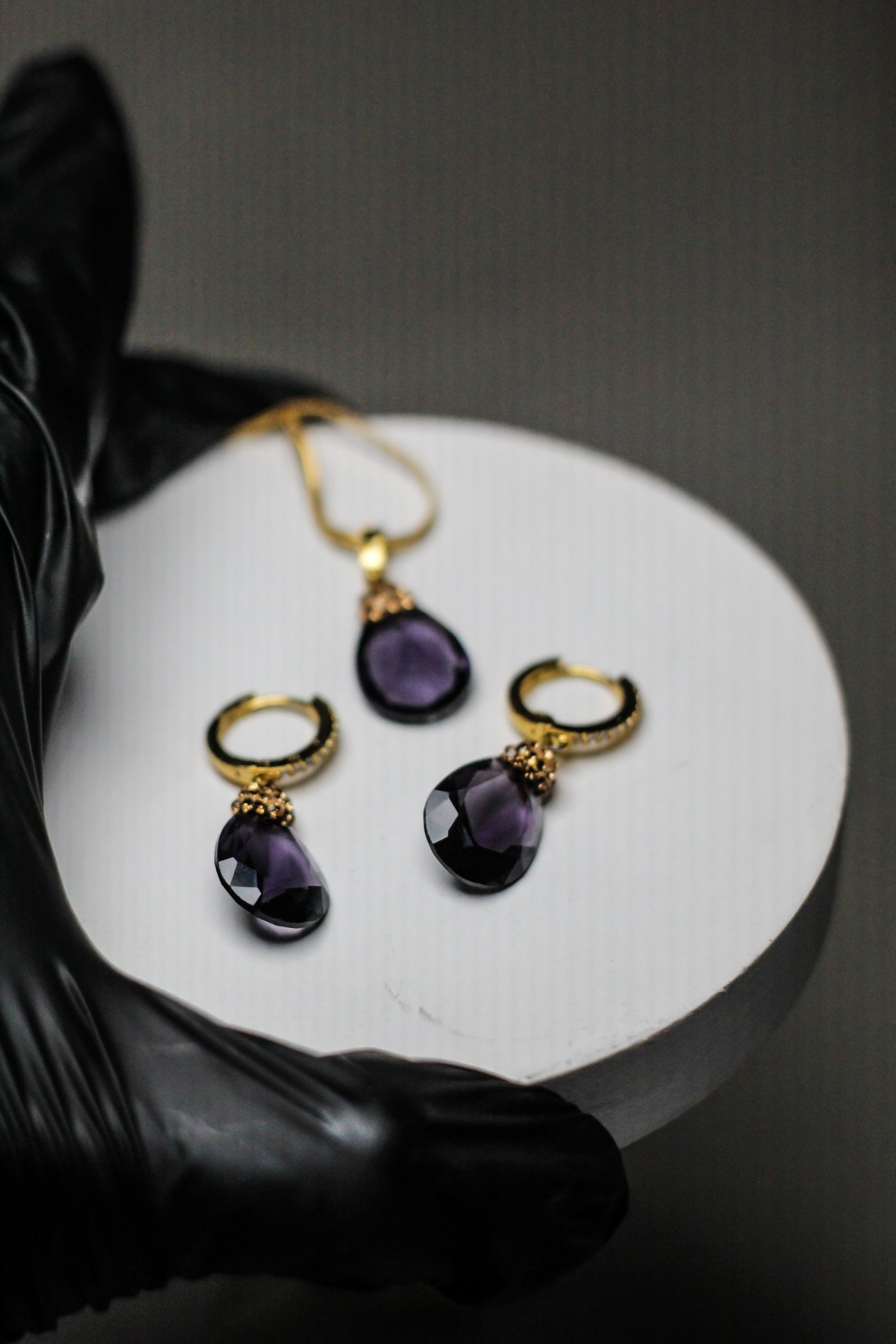 • Rich Amethyst Hue: Deep violet gemstones for a regal, elegant look.