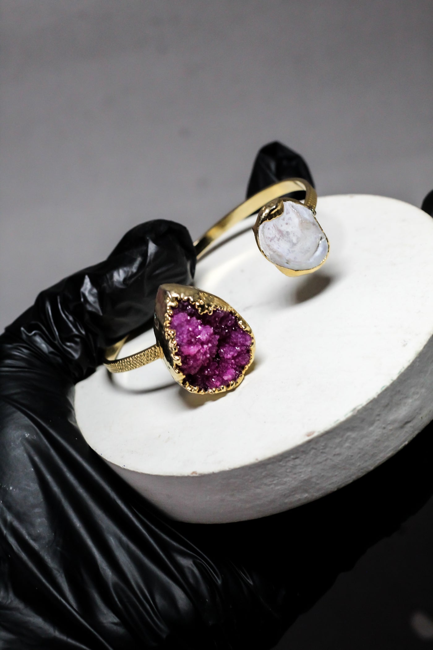 Natural Amethyst Druzy – Raw crystal texture with a rich purple hue for a bold, organic look.