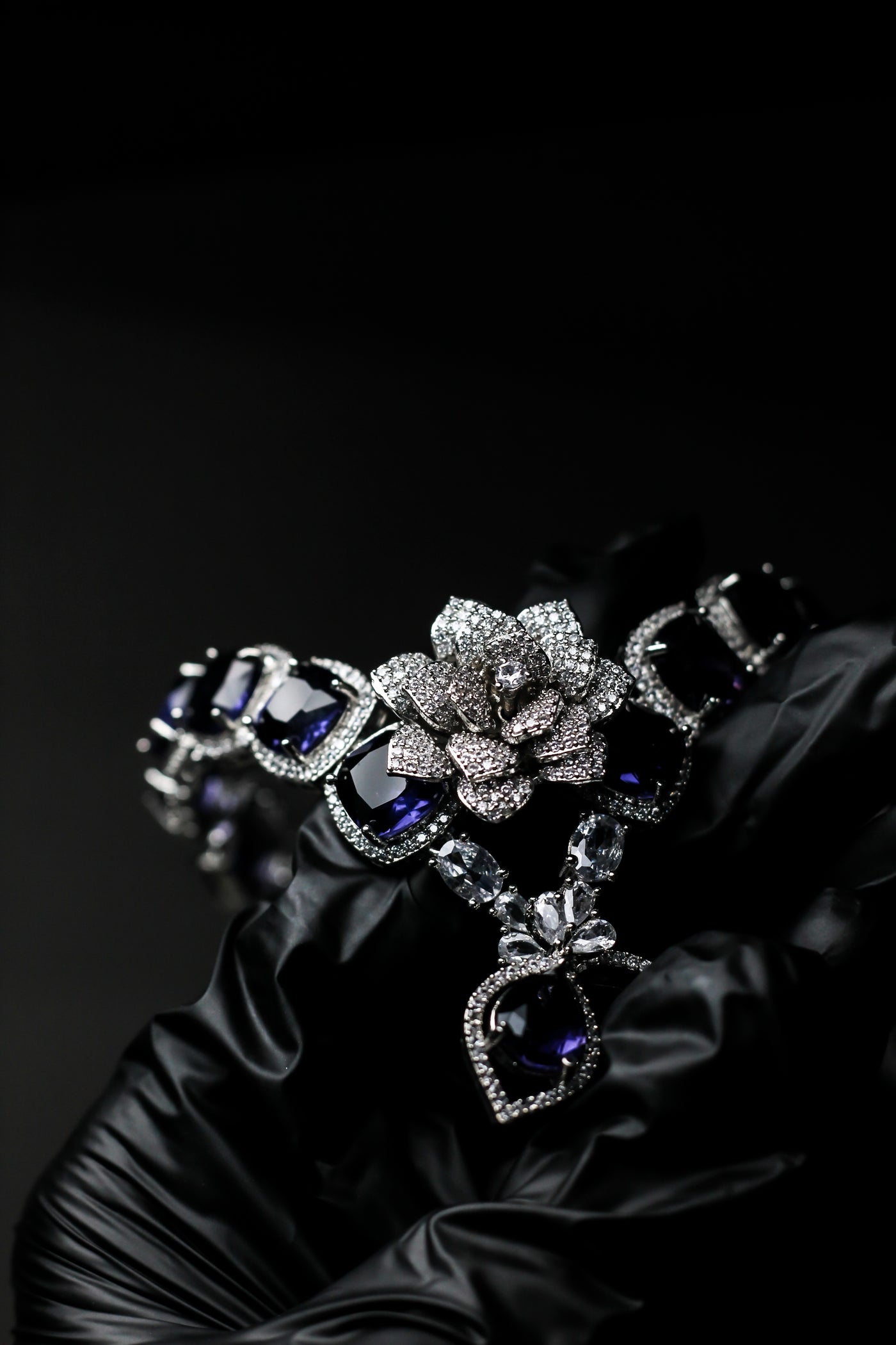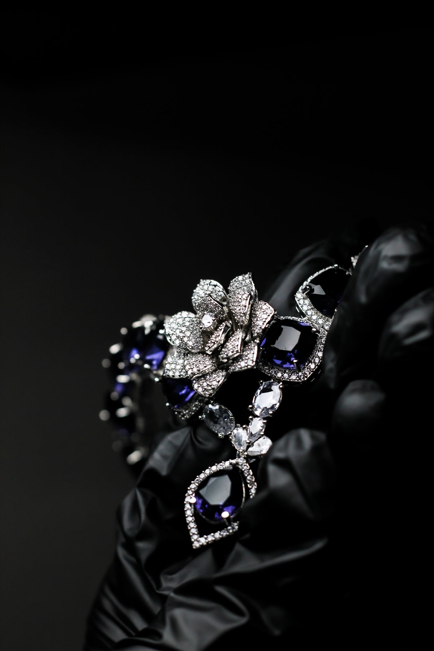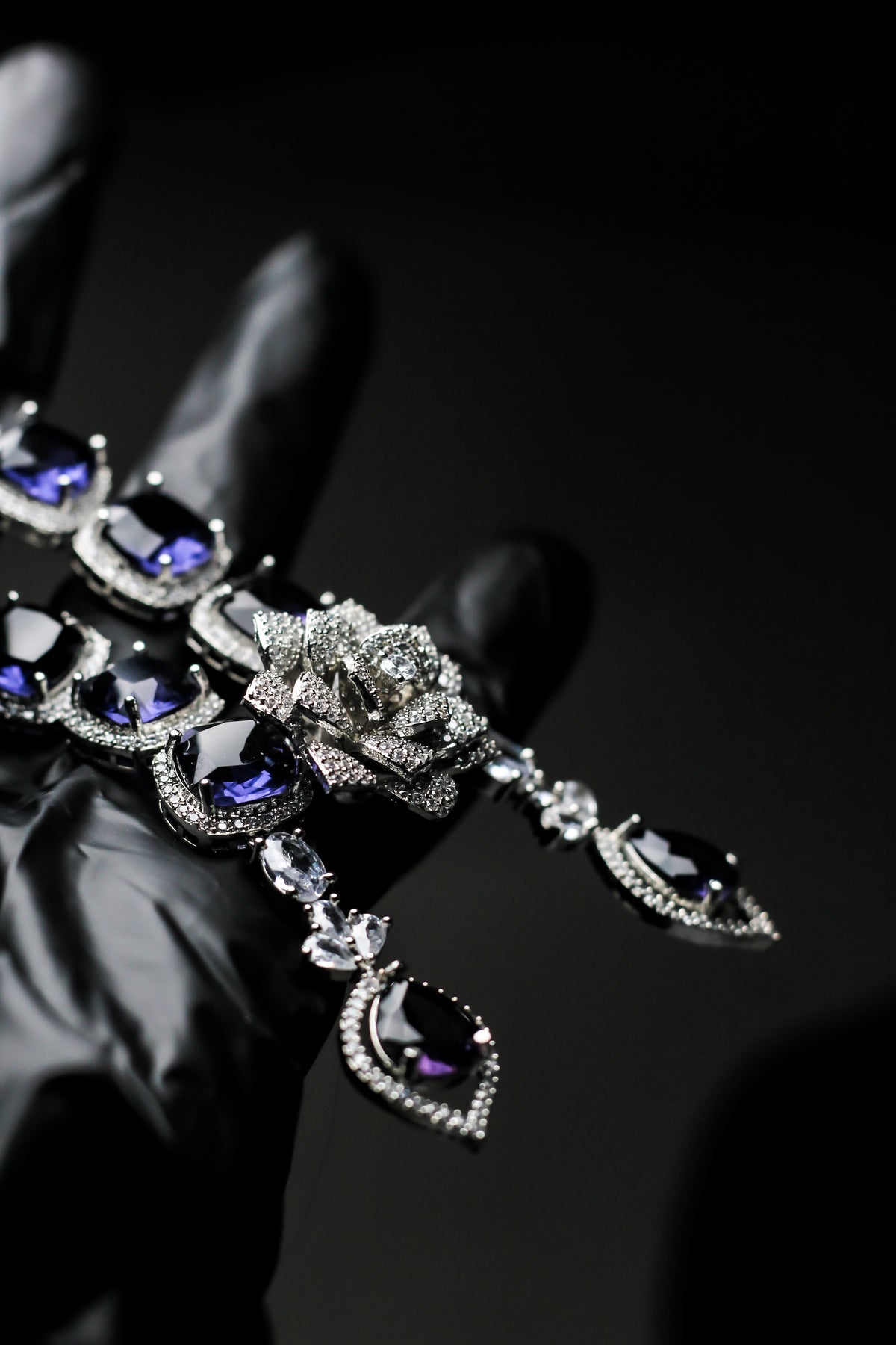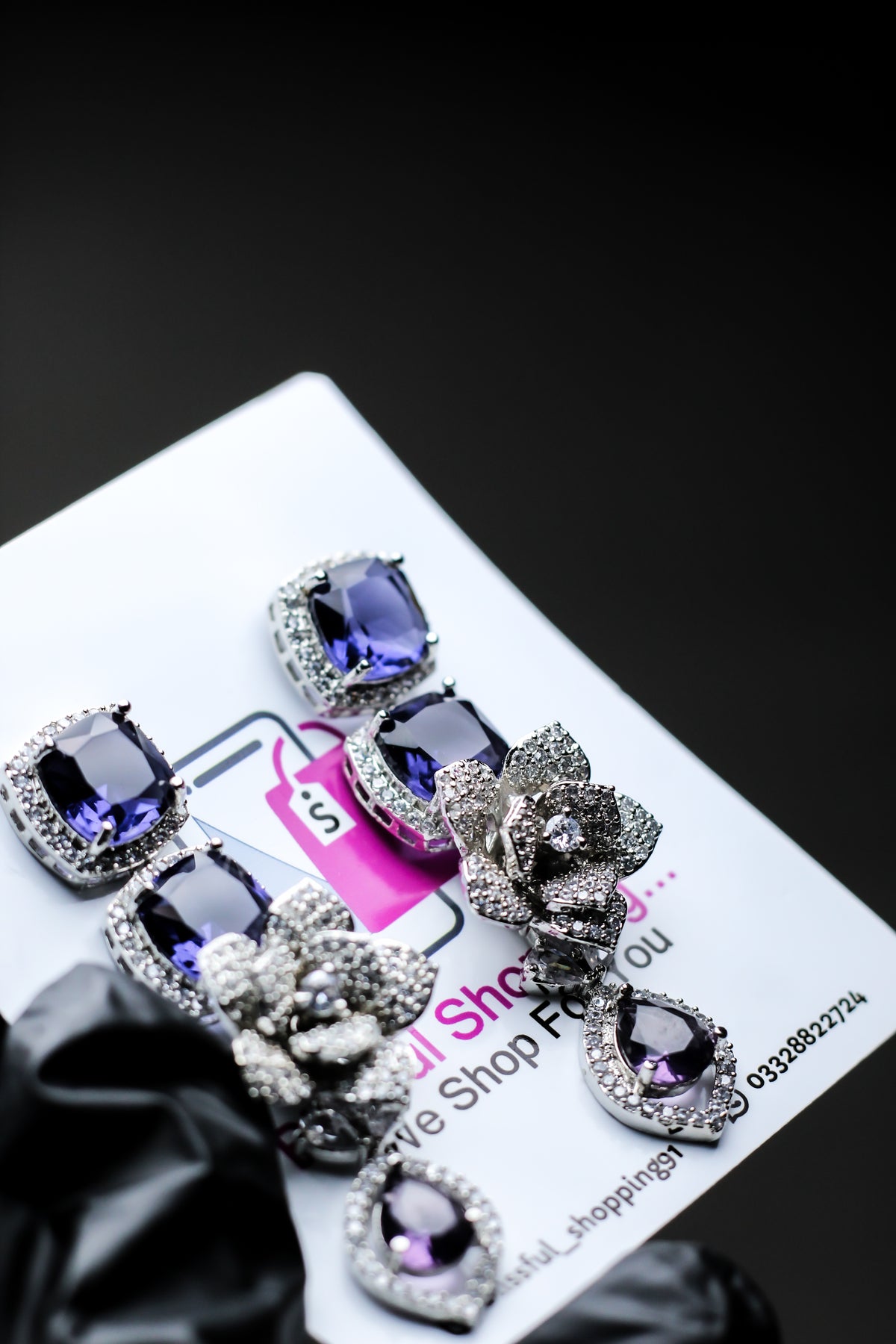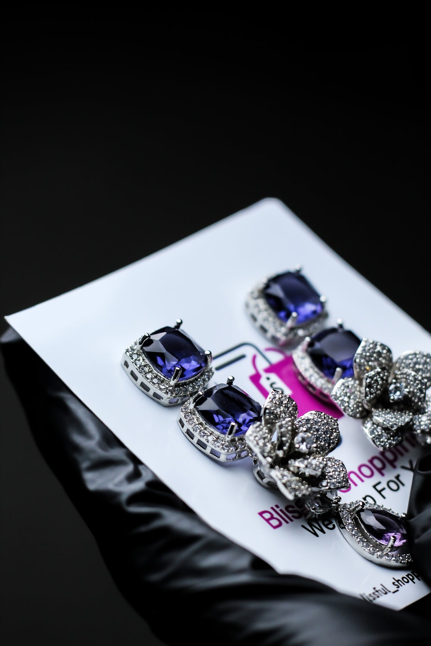 • Elegant Violet Stones: Adorned with deep violet gemstones for a regal touch.